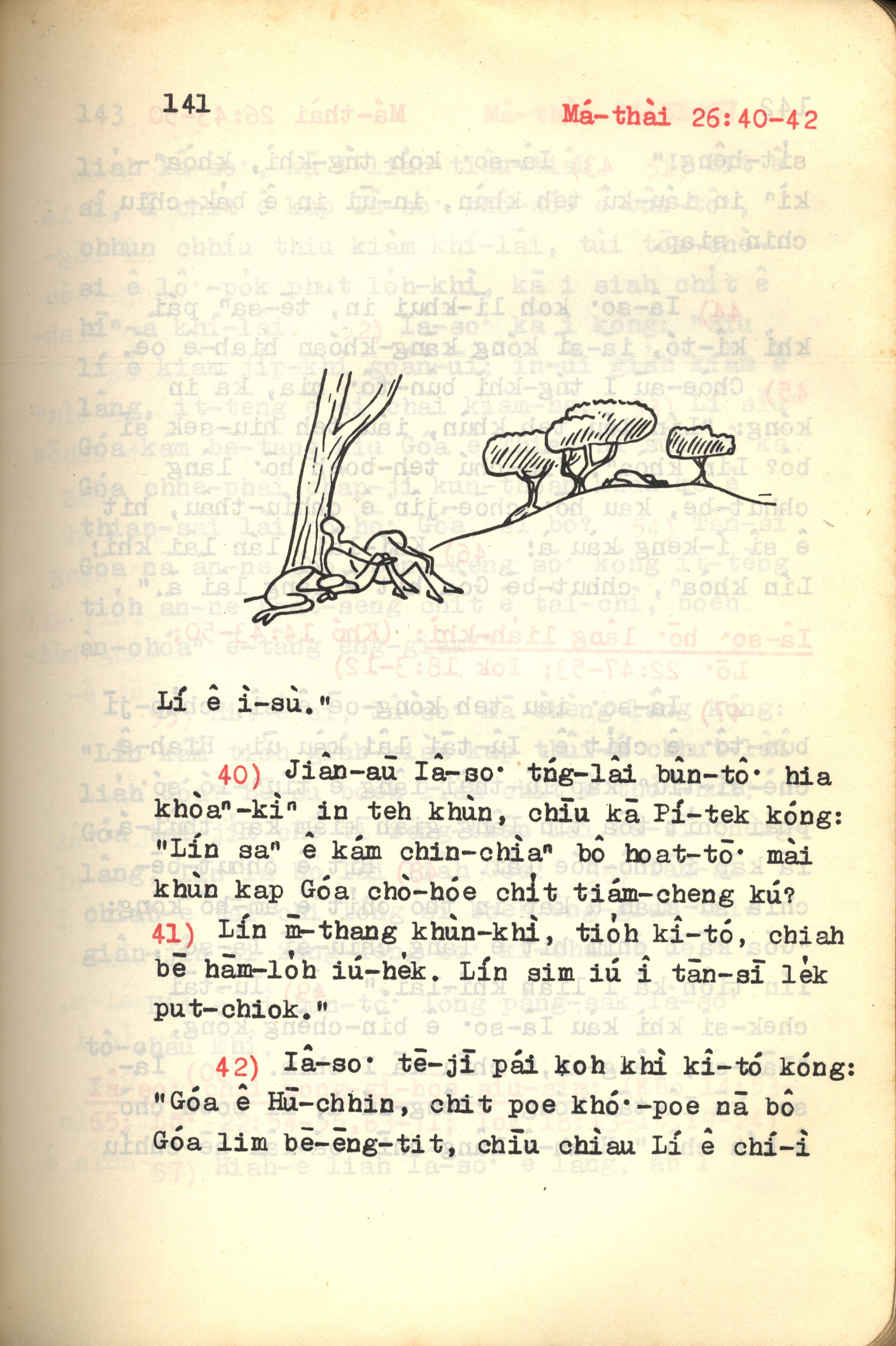1972年新約紅皮聖經 馬太福音 26 章 40 節到 26 章 42 節