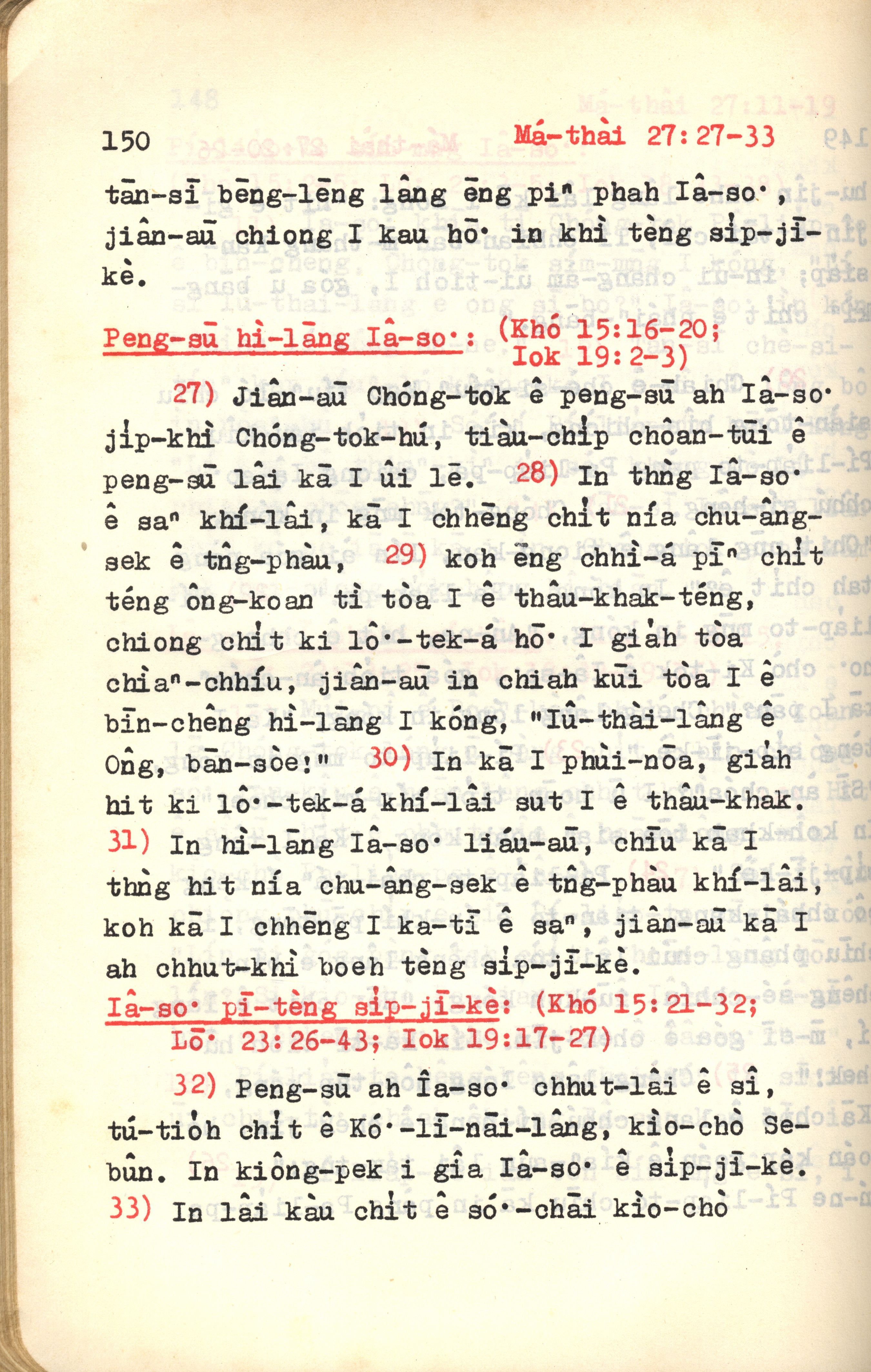 1972年新約紅皮聖經 馬太福音 27 章 27 節到 27 章 33 節