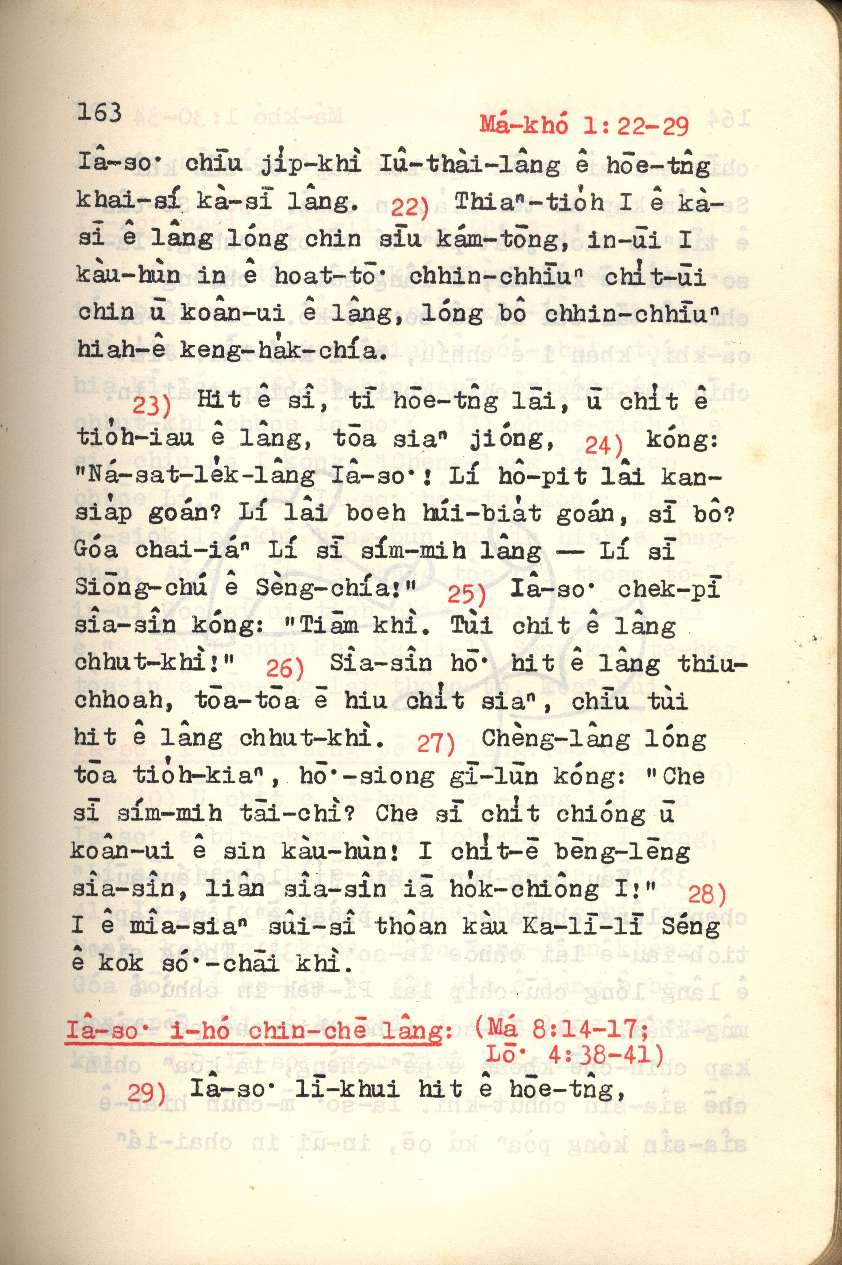 1972年新約紅皮聖經 馬可福音 1 章 22 節到 1 章 29 節