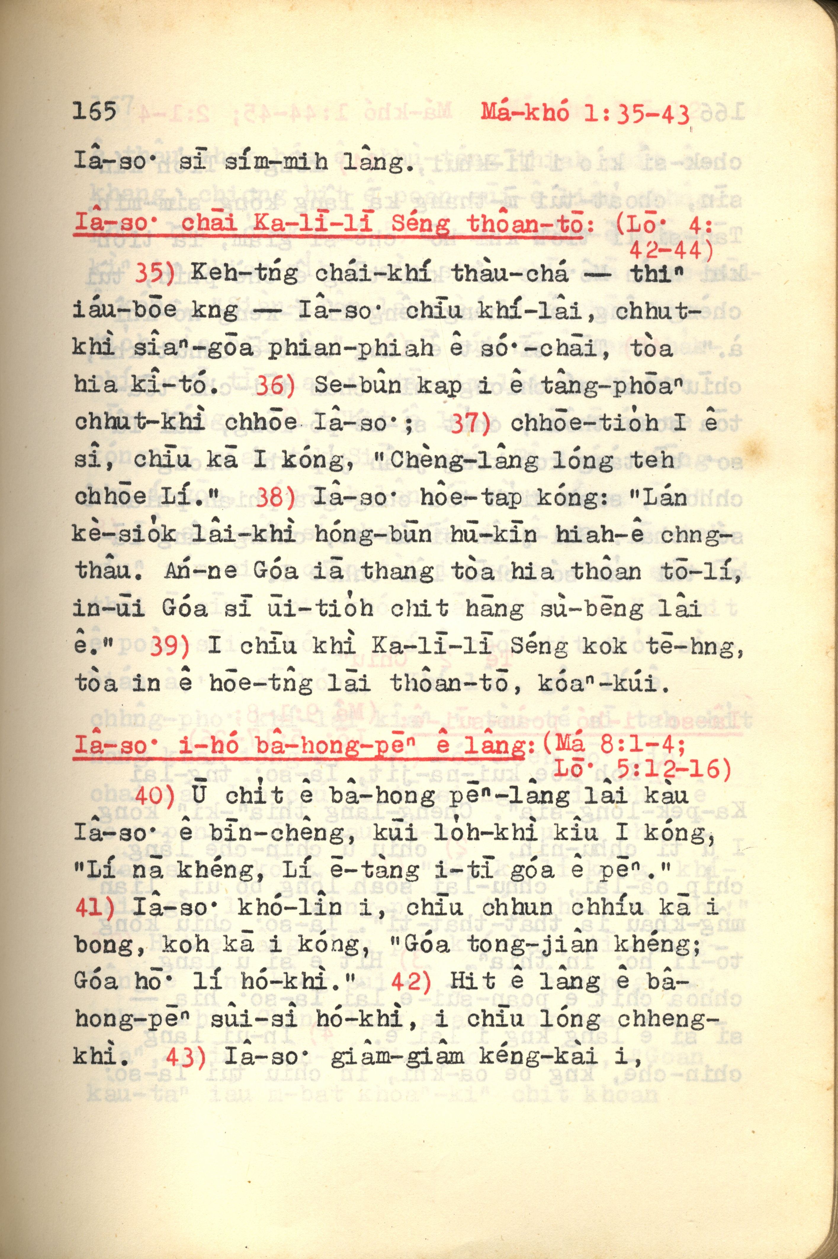 1972年新約紅皮聖經 馬可福音 1 章 35 節到 1 章 43 節