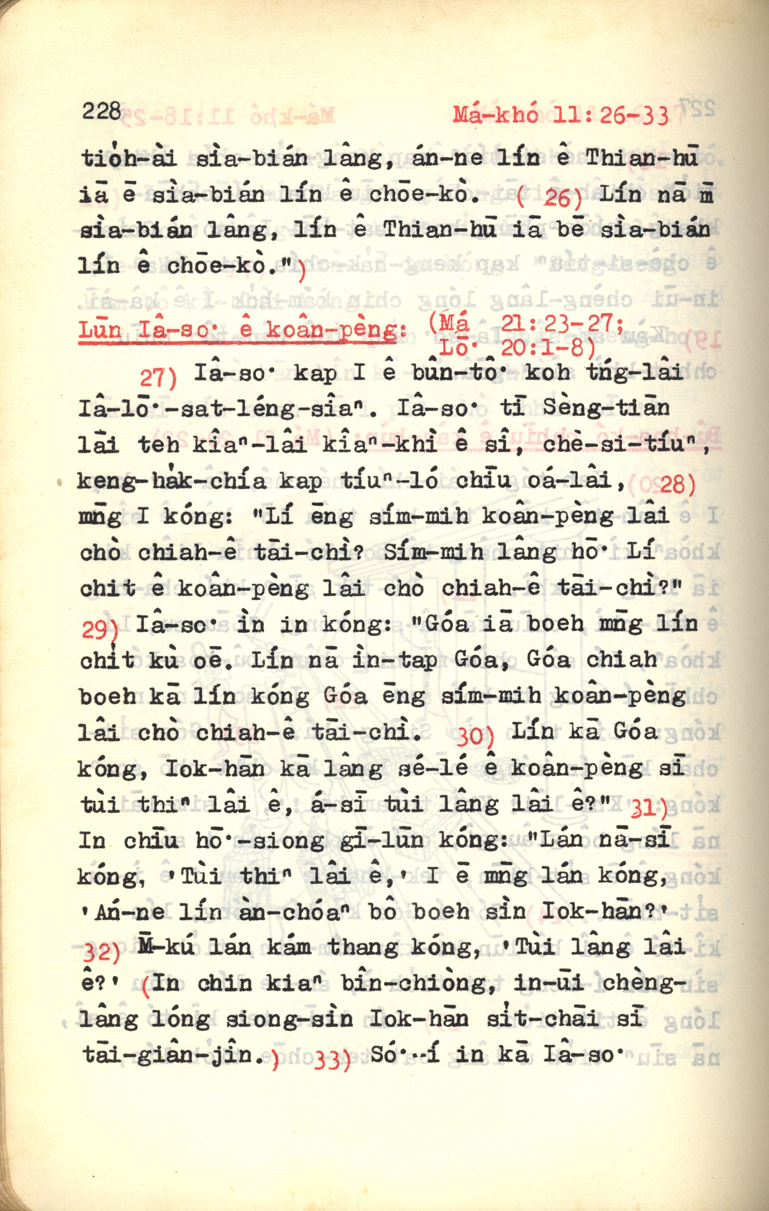 1972年新約紅皮聖經 馬可福音 11 章 26 節到 11 章 33 節