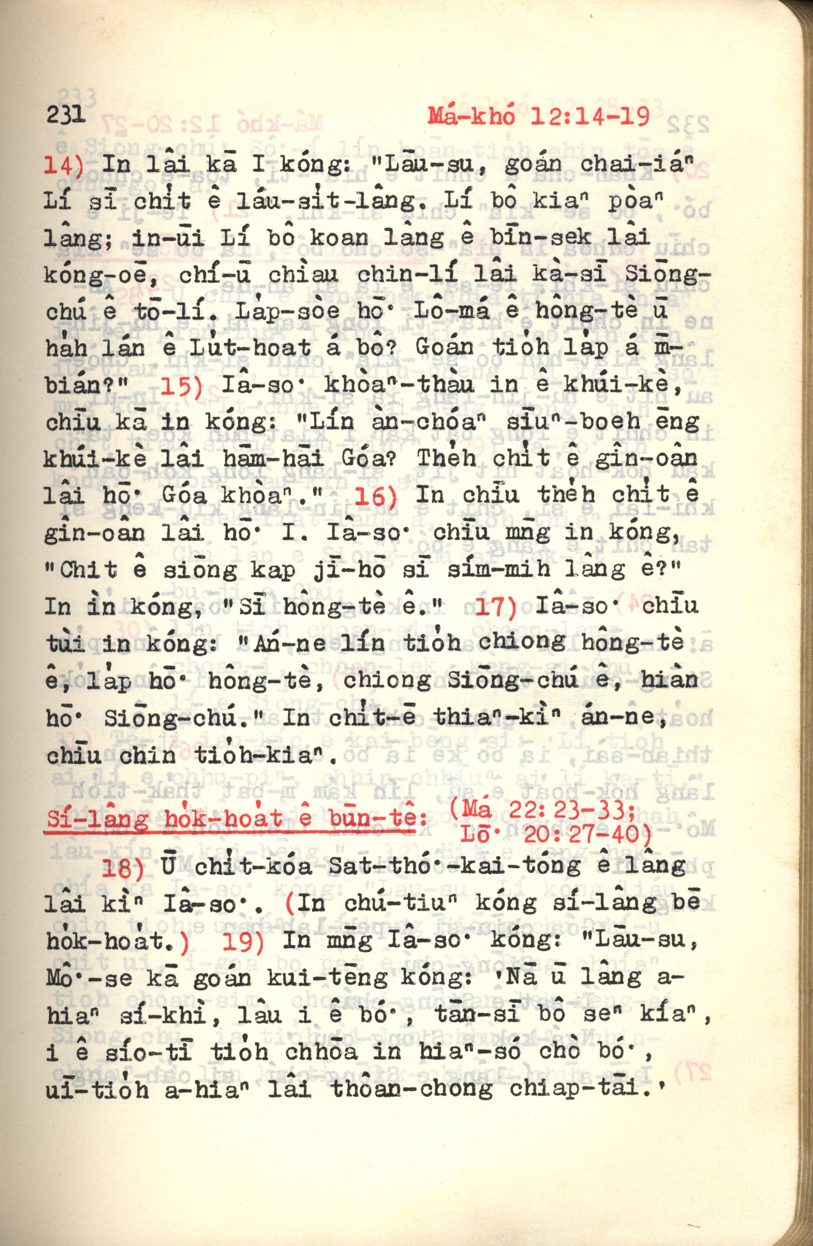 1972年新約紅皮聖經 馬可福音 12 章 14 節到 12 章 19 節