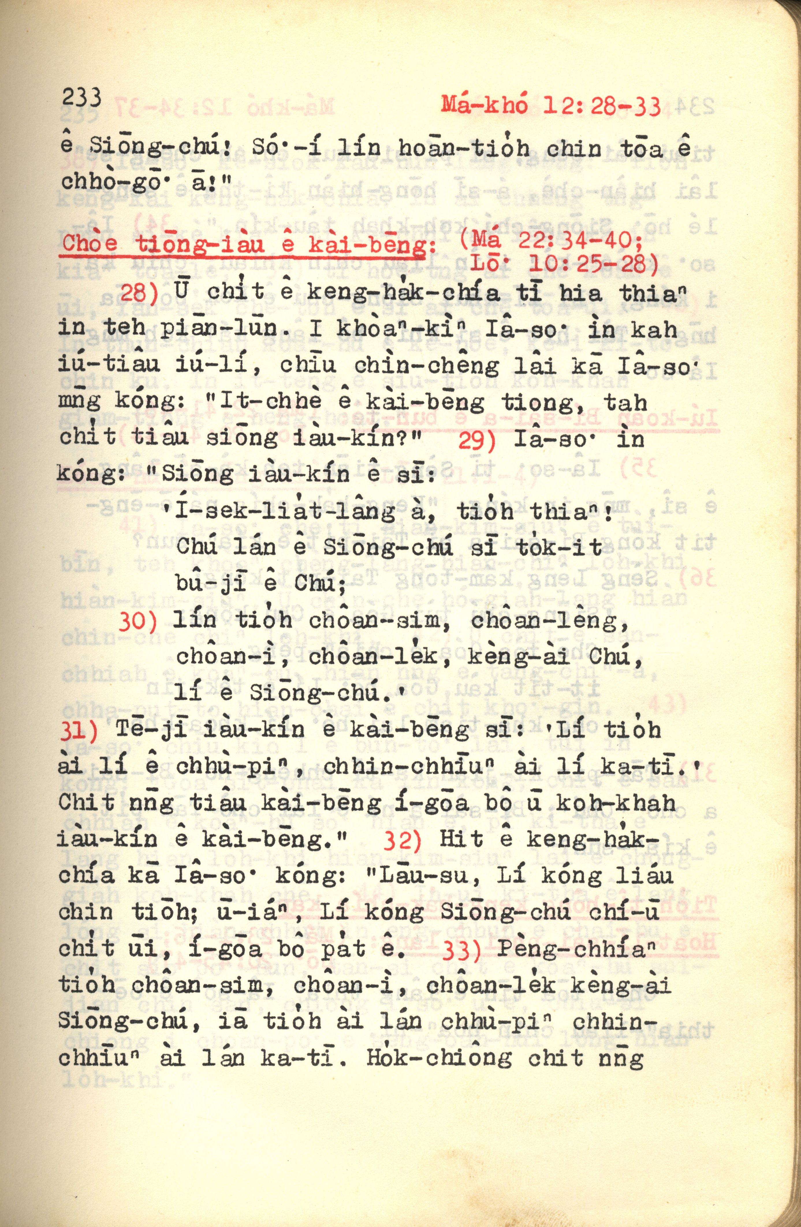 1972年新約紅皮聖經 馬可福音 12 章 28 節到 12 章 33 節