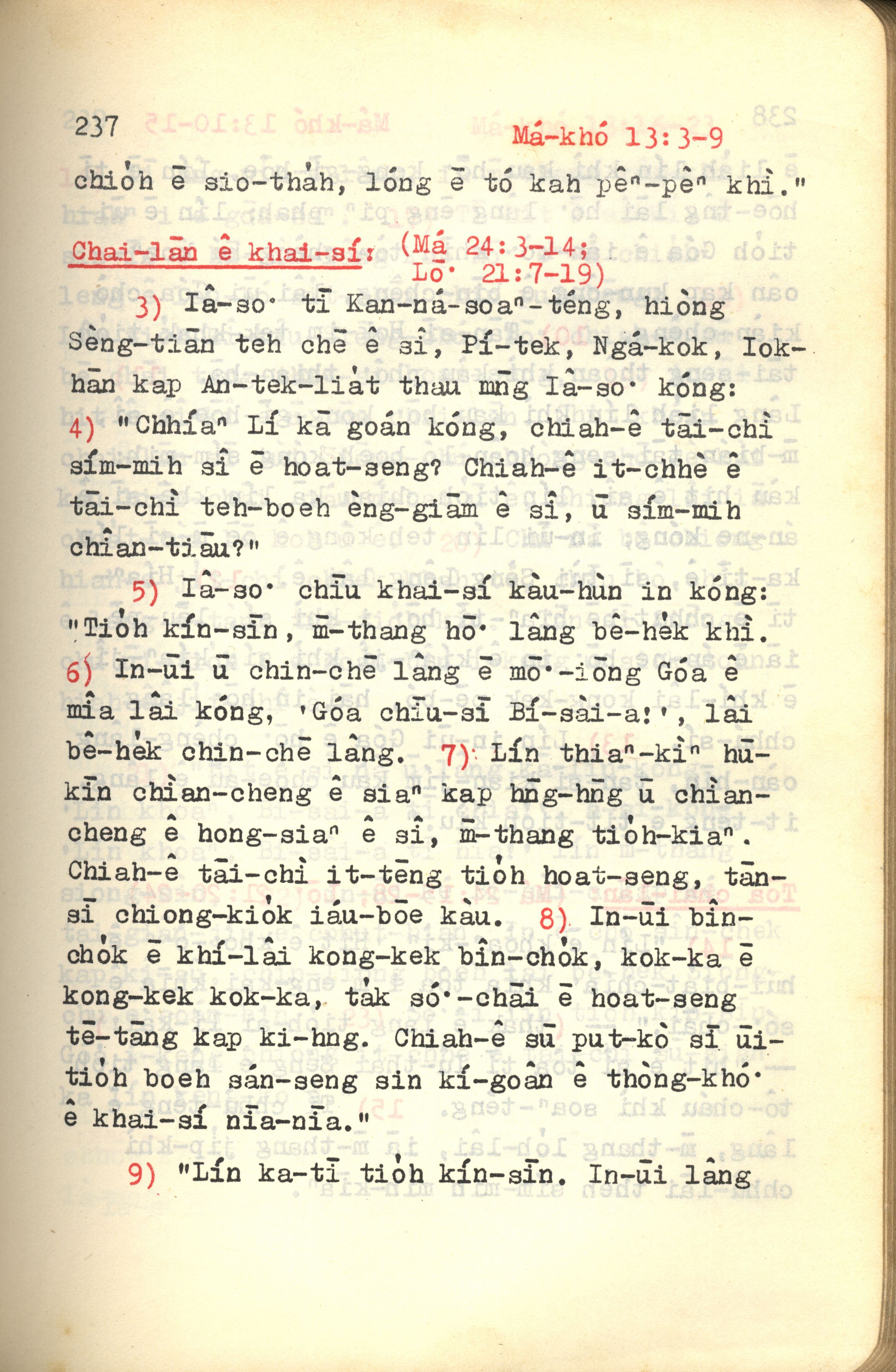 1972年新約紅皮聖經 馬可福音 13 章 3 節到 13 章 9 節