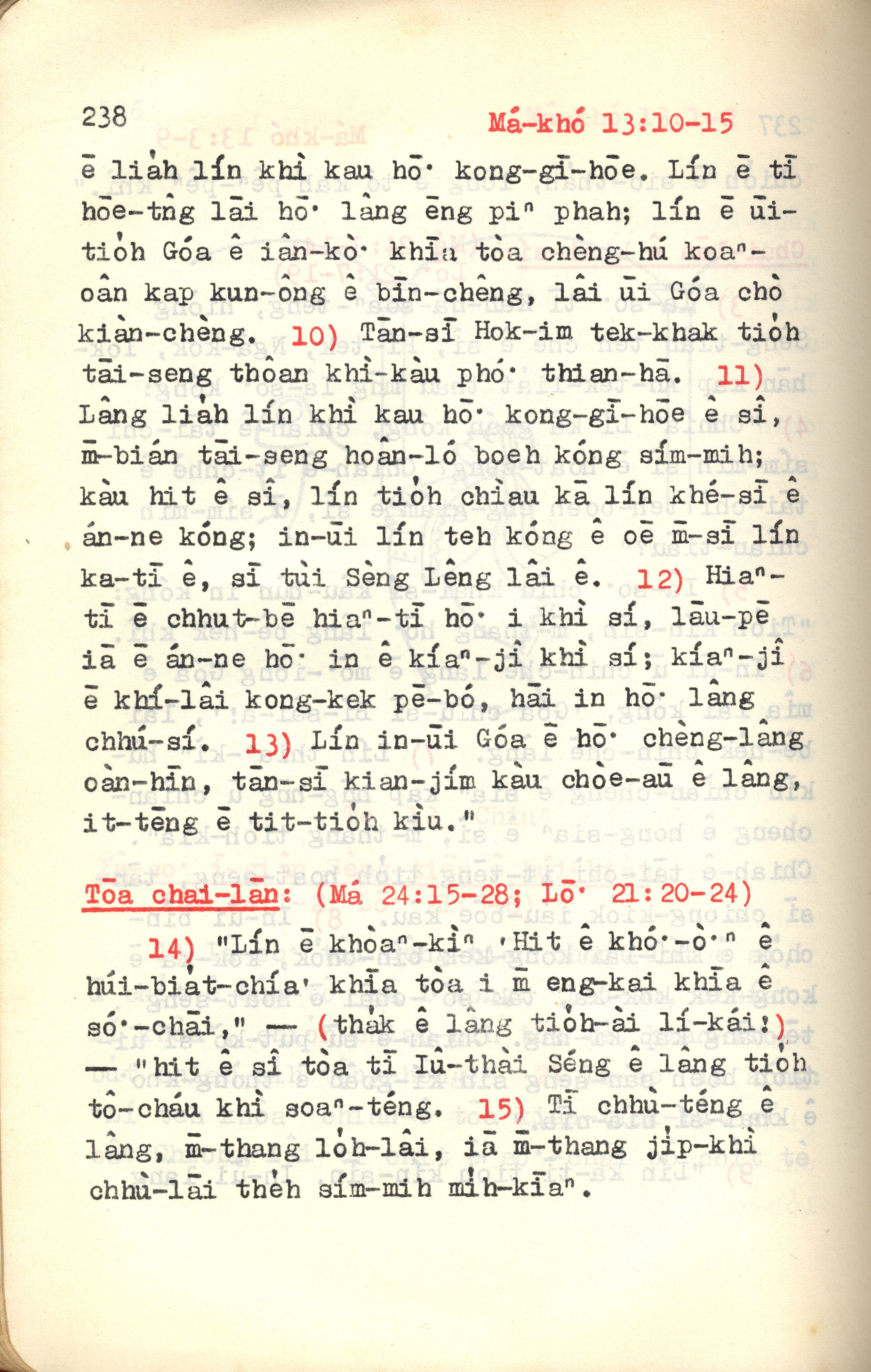 1972年新約紅皮聖經 馬可福音 13 章 10 節到 13 章 15 節