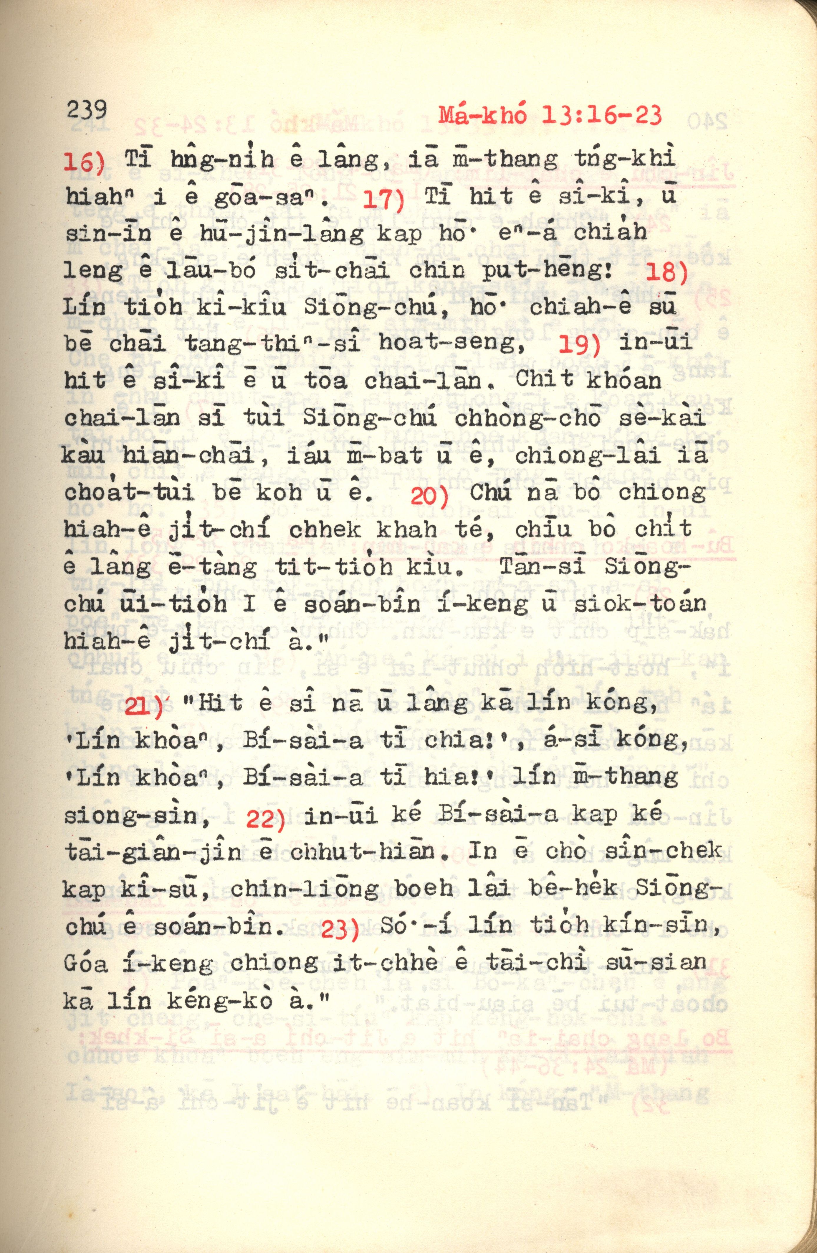 1972年新約紅皮聖經 馬可福音 13 章 16 節到 13 章 23 節