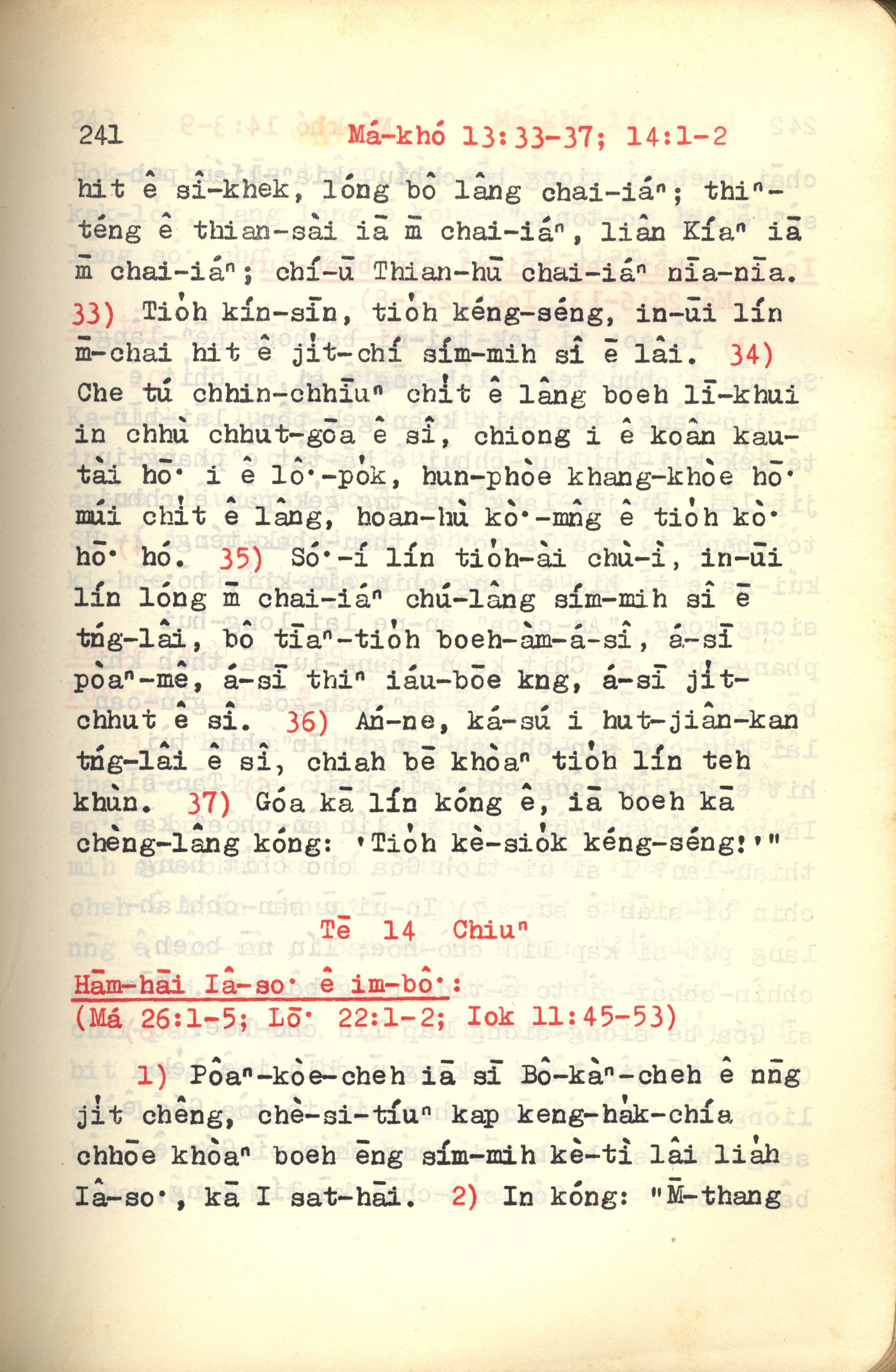 1972年新約紅皮聖經 馬可福音 13 章 33 節到 14 章 2 節