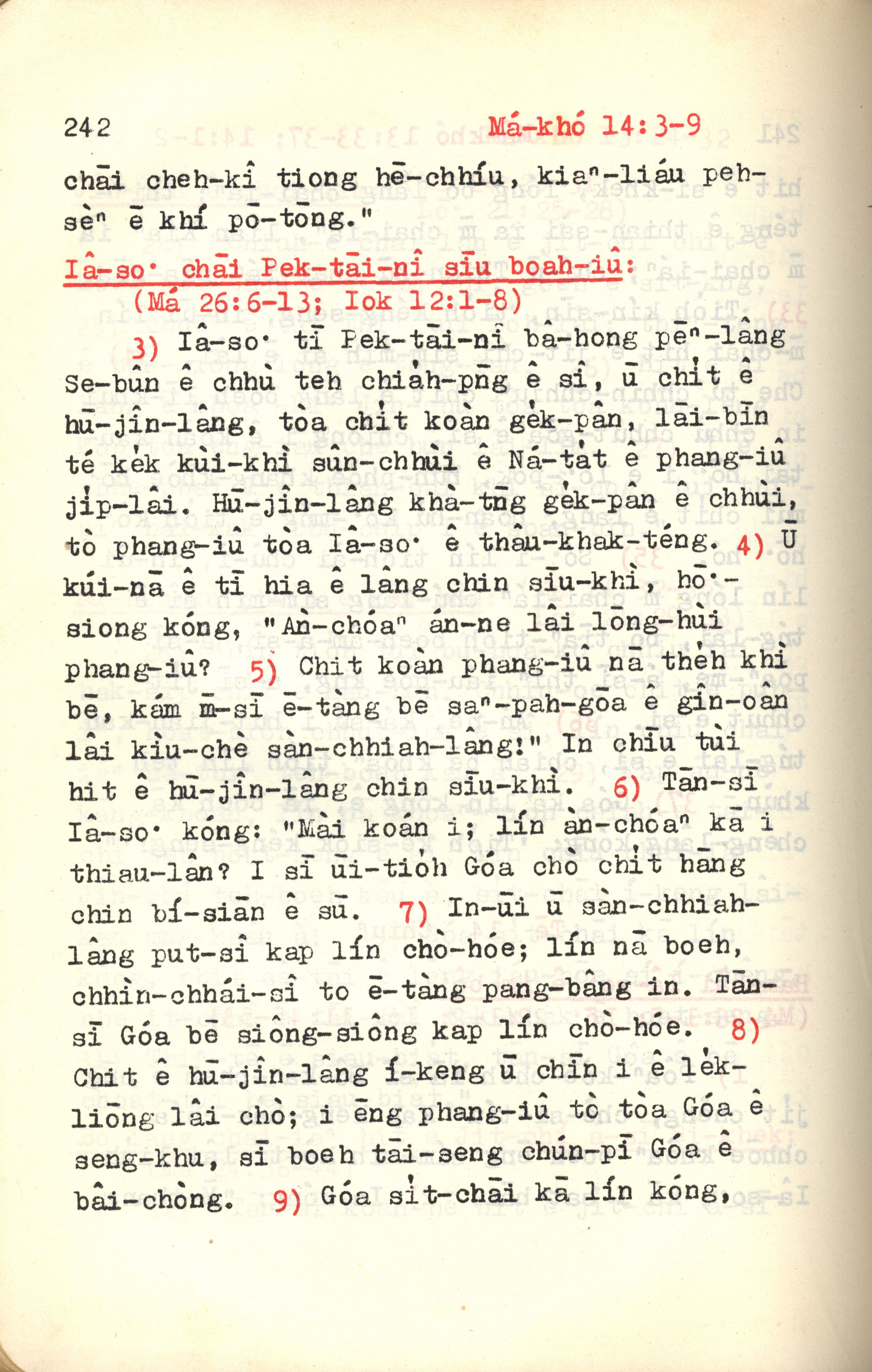 1972年新約紅皮聖經 馬可福音 14 章 3 節到 14 章 9 節