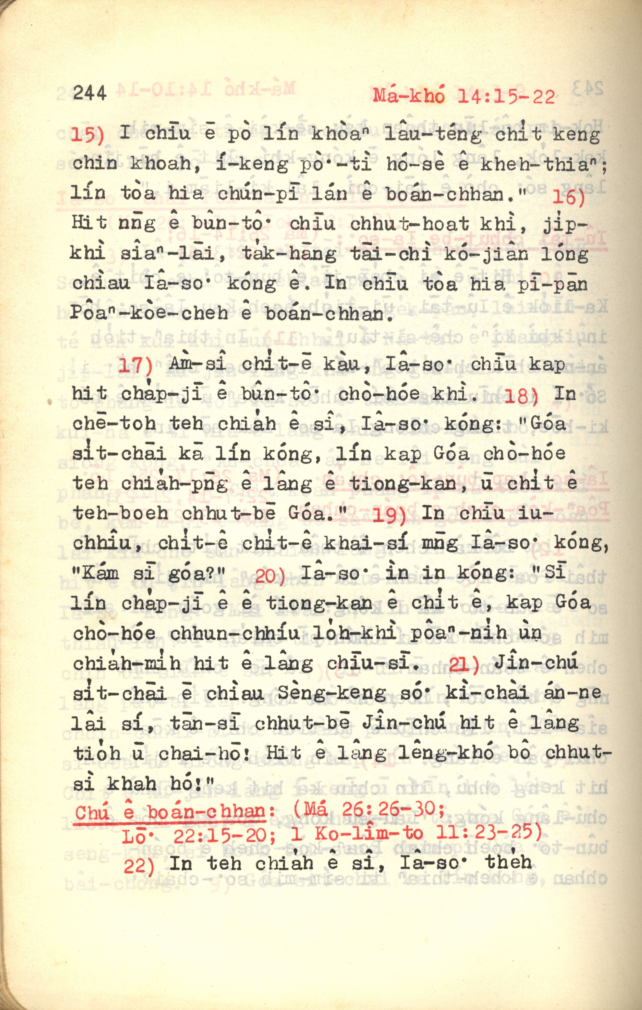 1972年新約紅皮聖經 馬可福音 14 章 15 節到 14 章 22 節