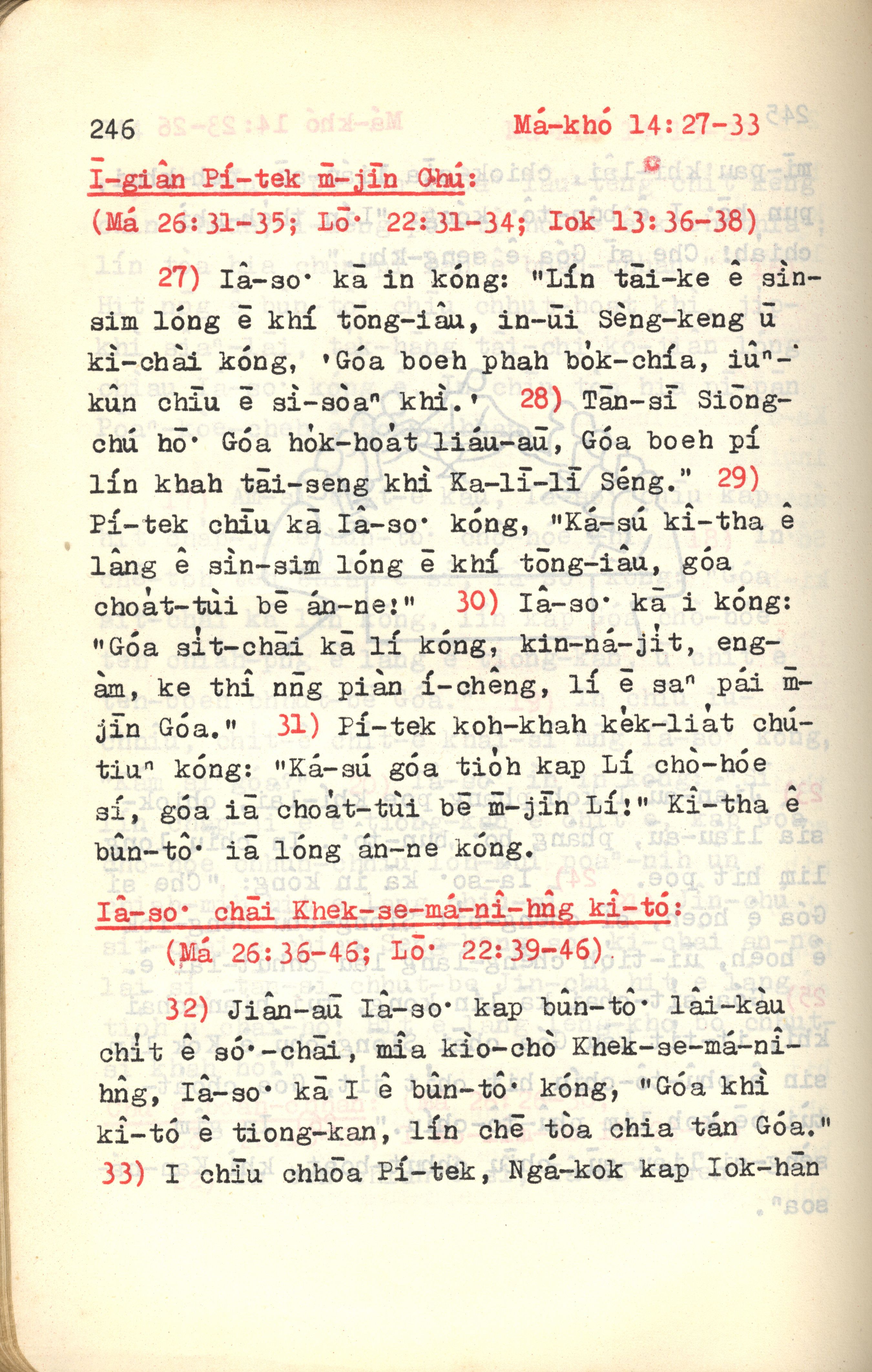 1972年新約紅皮聖經 馬可福音 14 章 27 節到 14 章 33 節