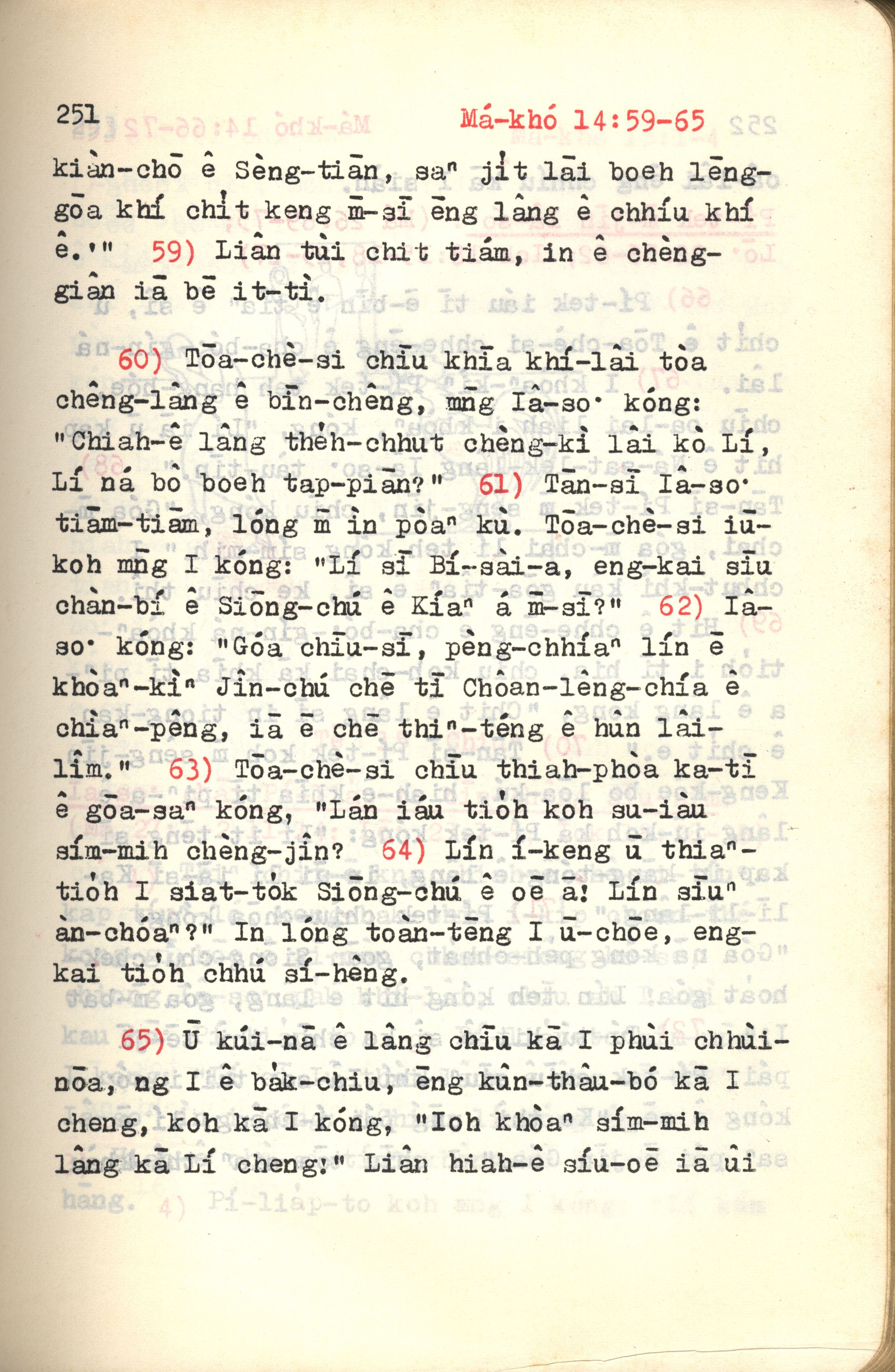 1972年新約紅皮聖經 馬可福音 14 章 59 節到 14 章 65 節