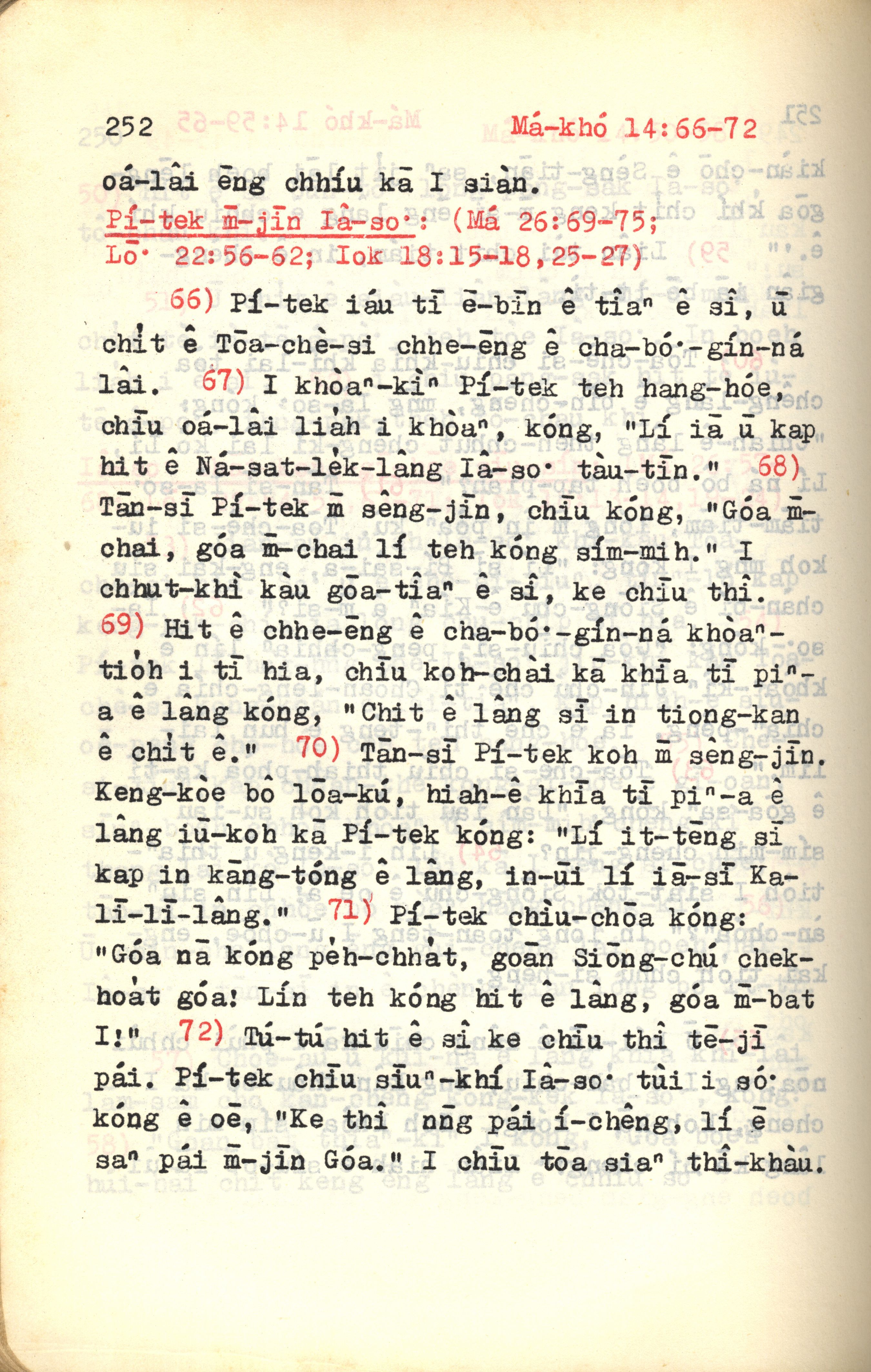 1972年新約紅皮聖經 馬可福音 14 章 66 節到 14 章 72 節