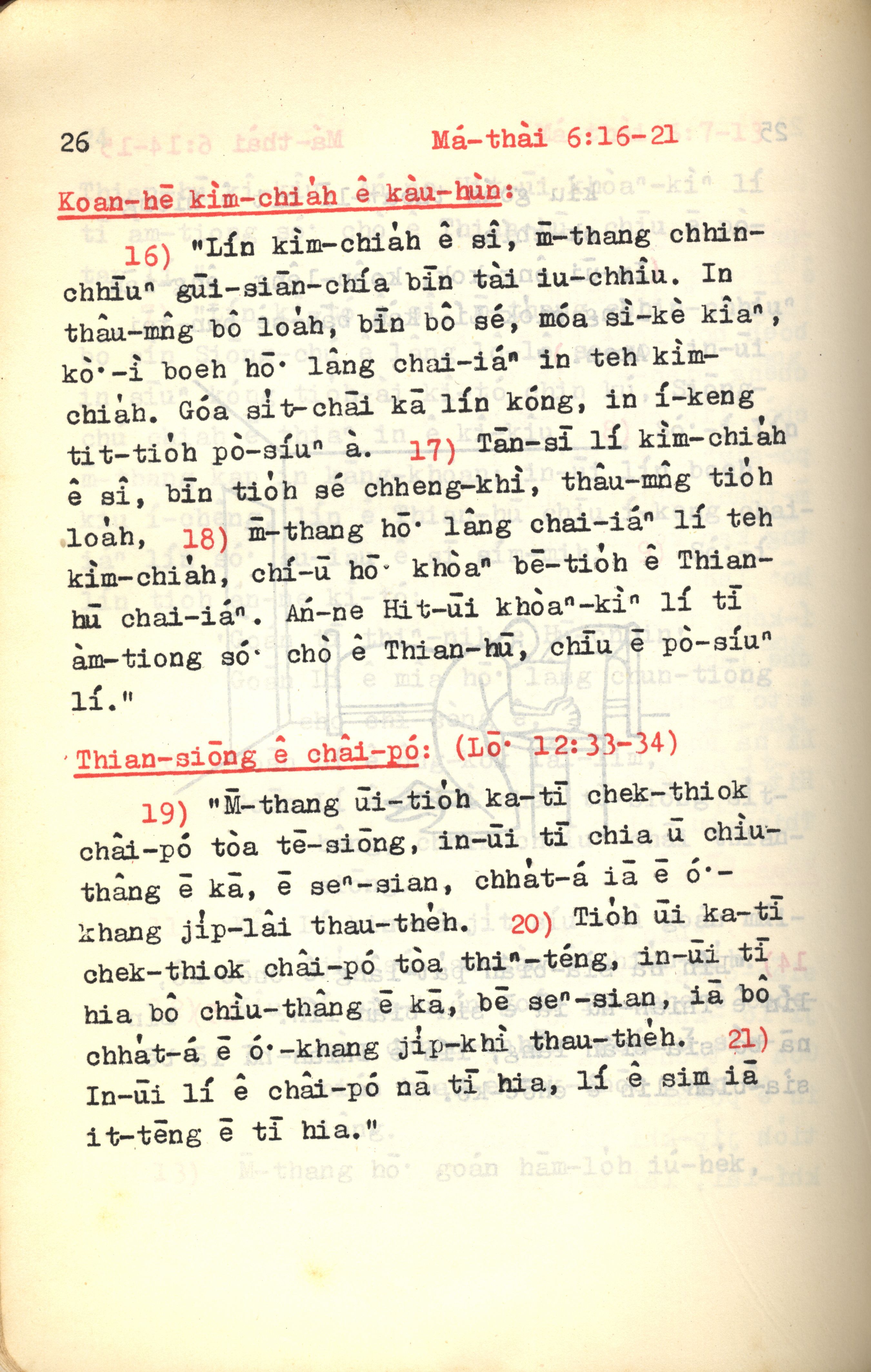 1972年新約紅皮聖經 馬太福音 6 章 16 節到 6 章 21 節