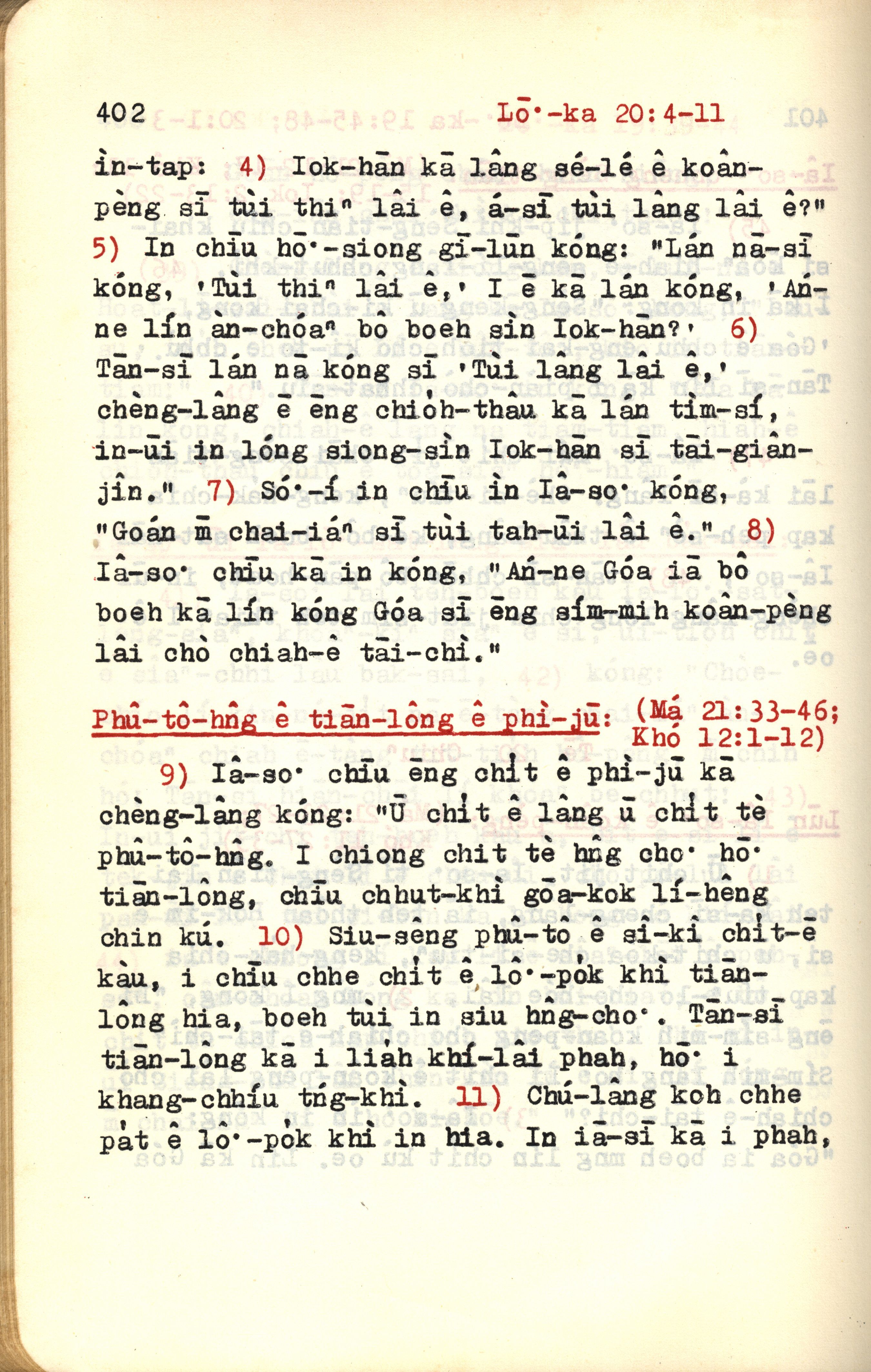 1972年新約紅皮聖經 路加福音 20 章 4 節到 20 章 11 節