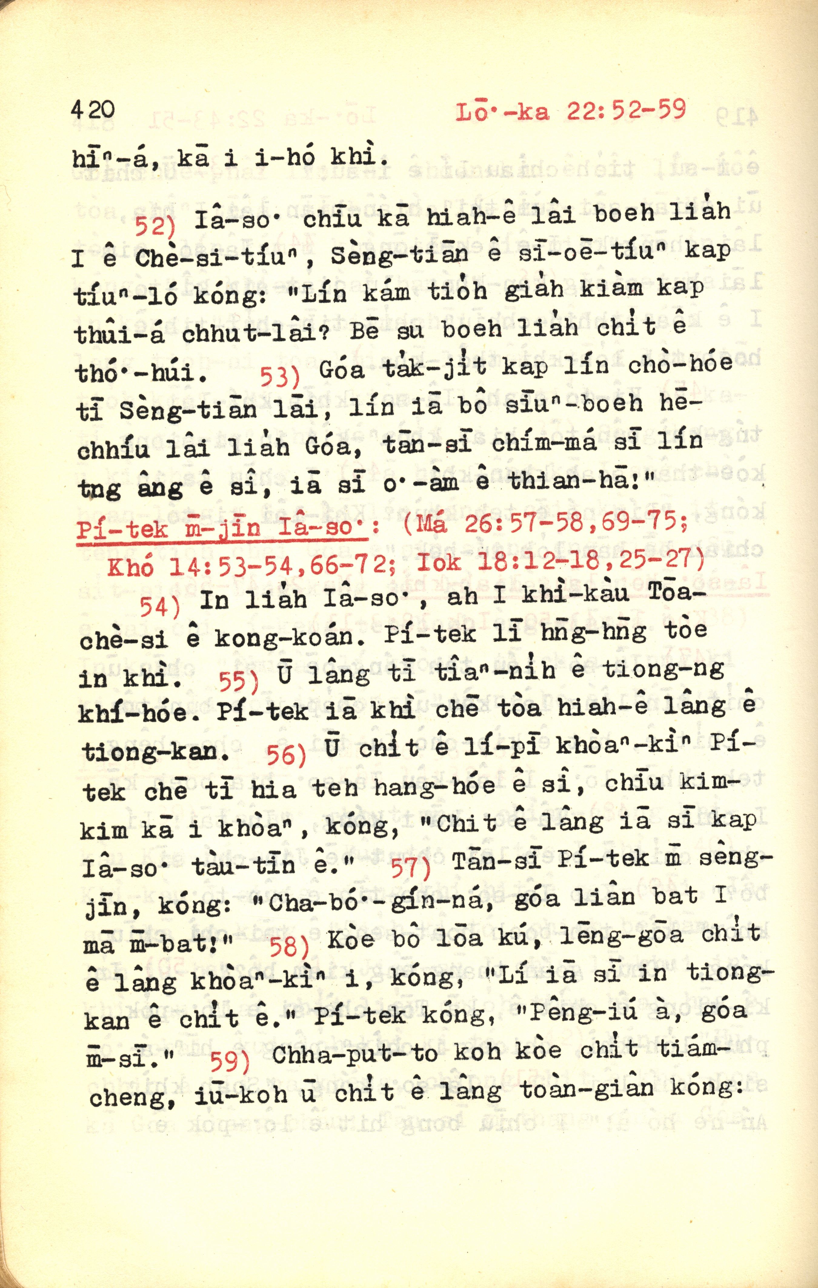 1972年新約紅皮聖經 路加福音 22 章 52 節到 22 章 59 節