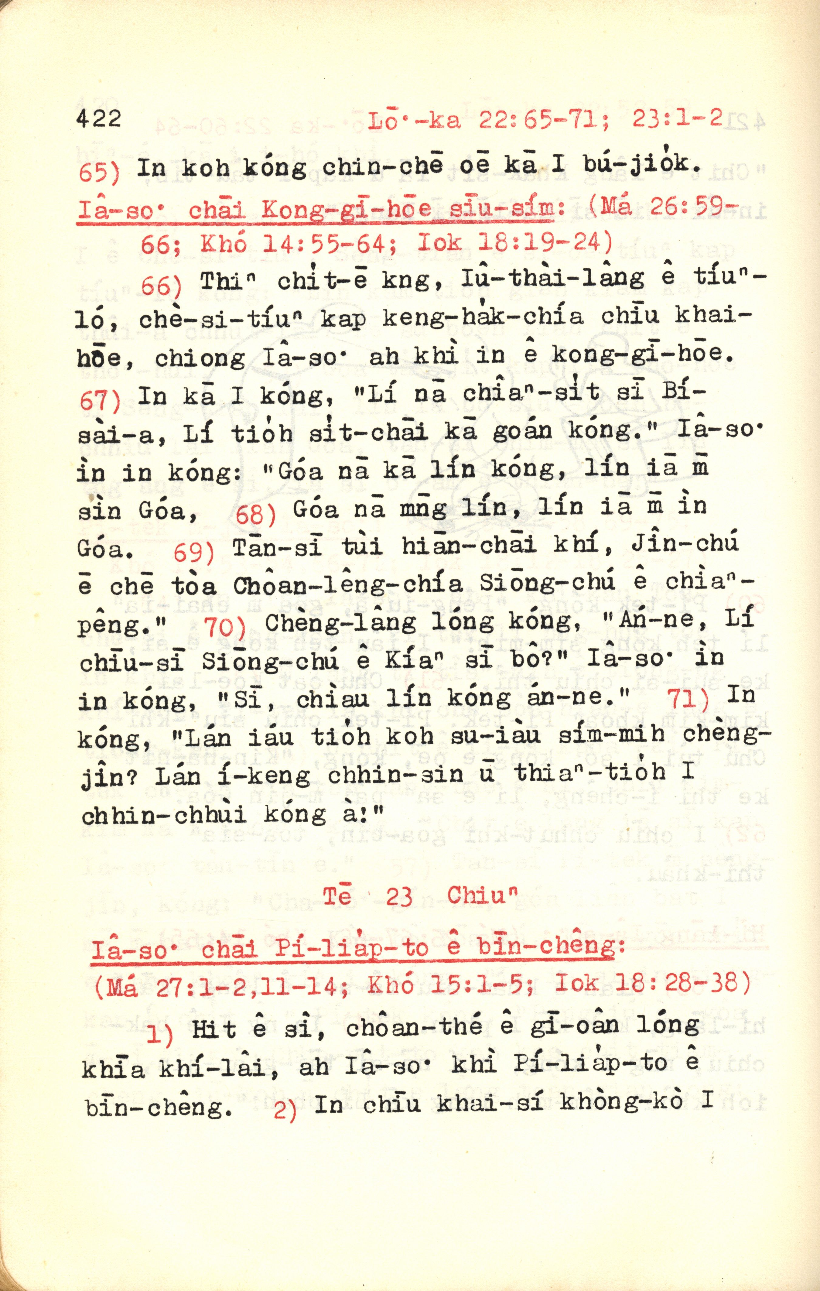 1972年新約紅皮聖經 路加福音 22 章 65 節到 23 章 2 節