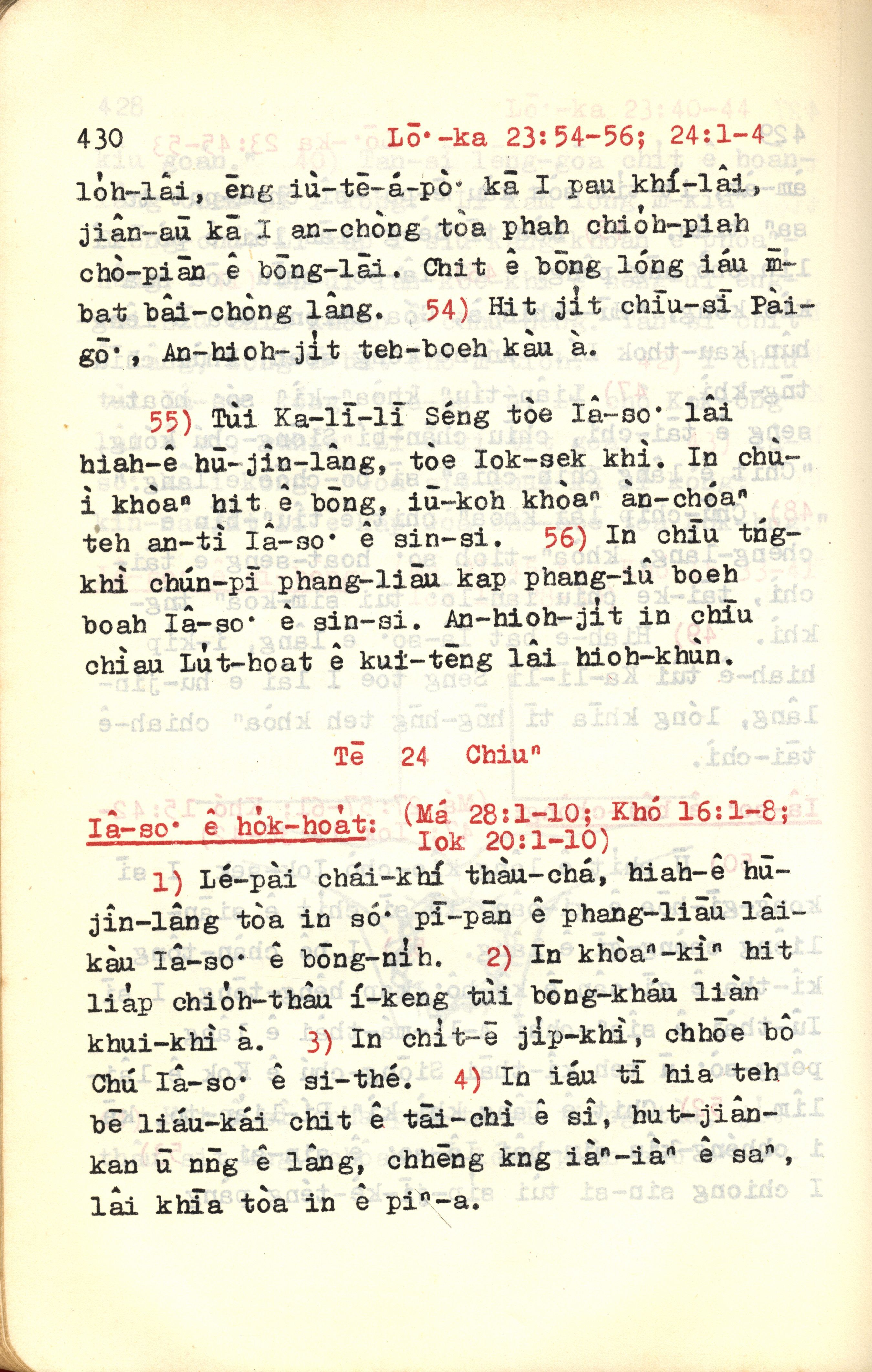 1972年新約紅皮聖經 路加福音 23 章 54 節到 24 章 4 節