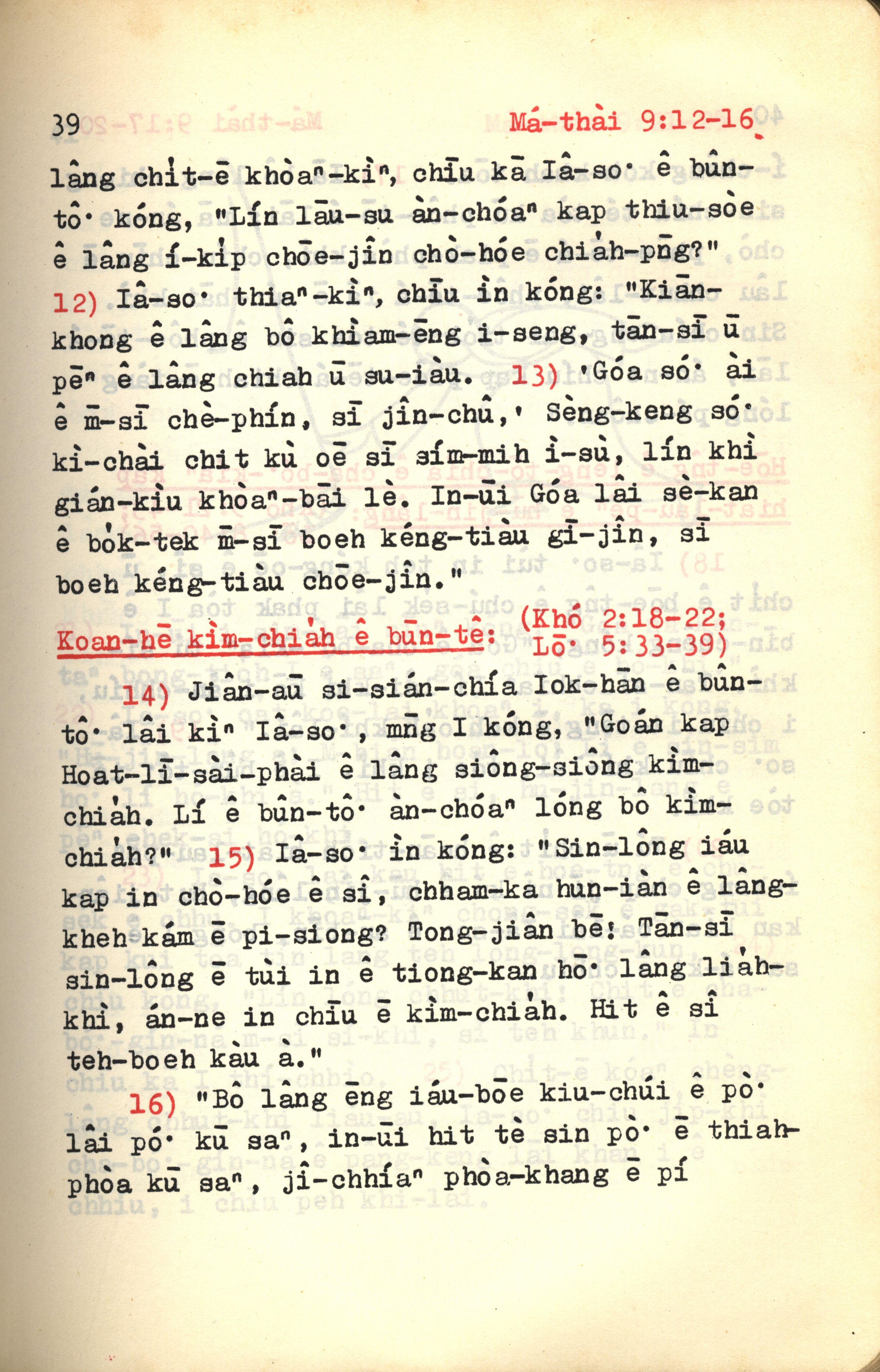 1972年新約紅皮聖經 馬太福音 9 章 12 節到 9 章 16 節
