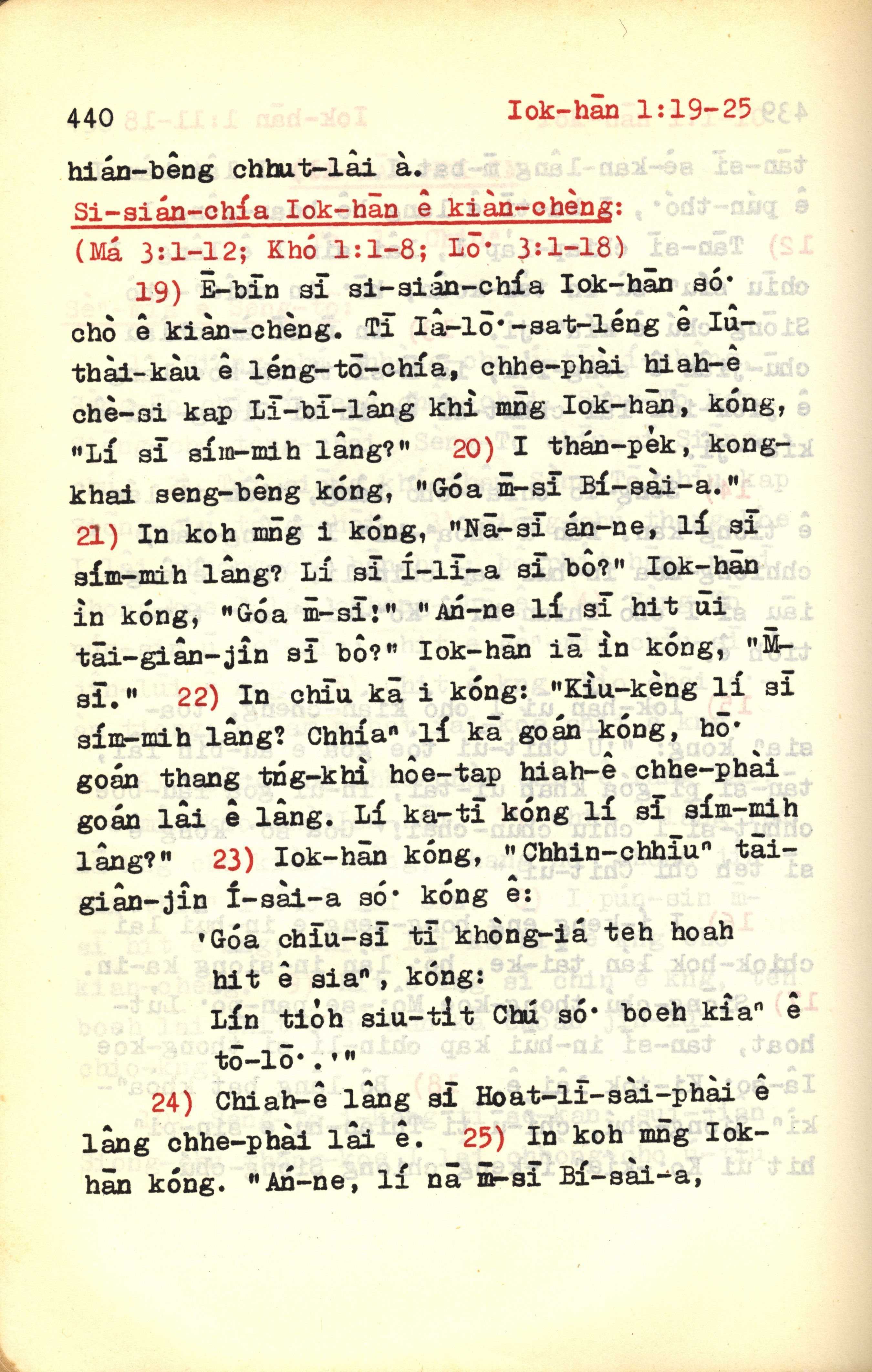 1972年新約紅皮聖經 約翰福音 1 章 19 節到 1 章 25 節