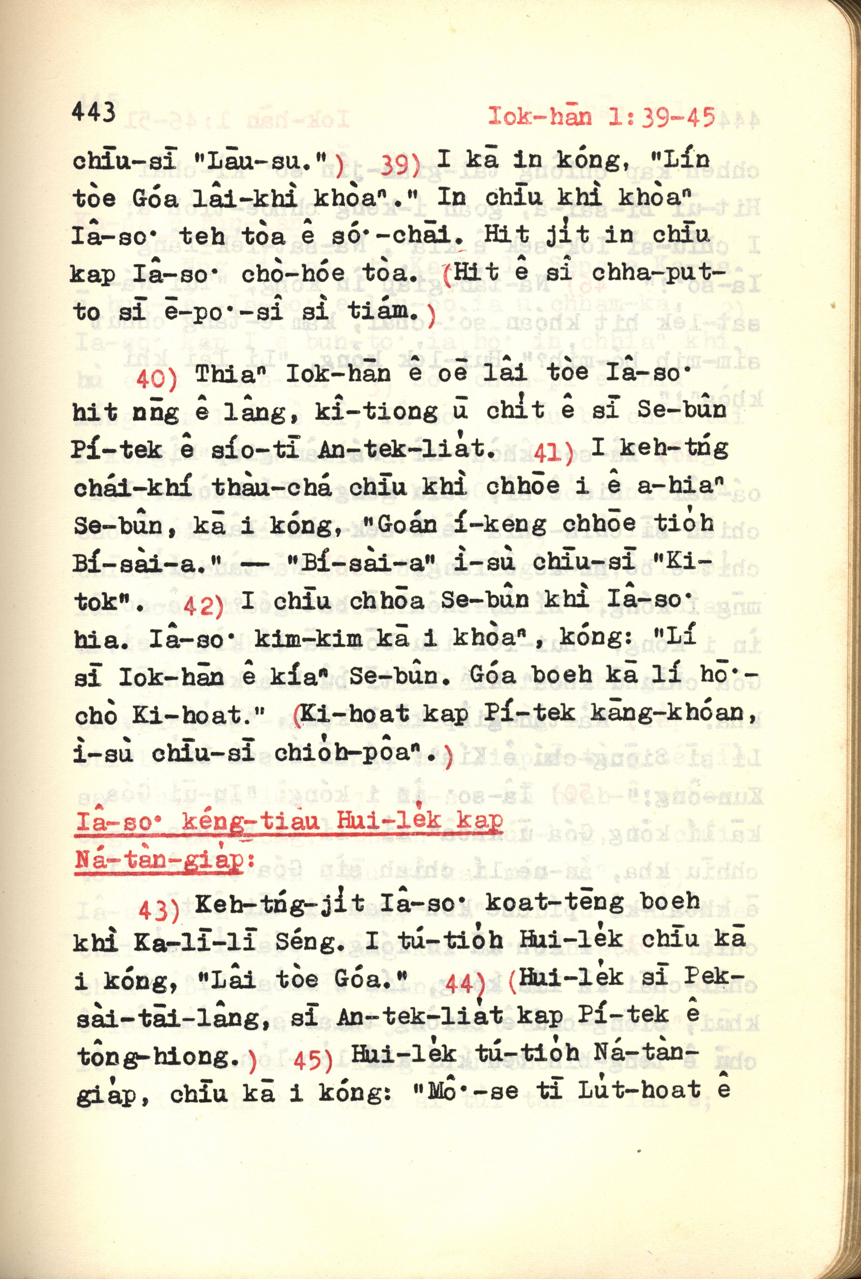 1972年新約紅皮聖經 約翰福音 1 章 39 節到 1 章 45 節