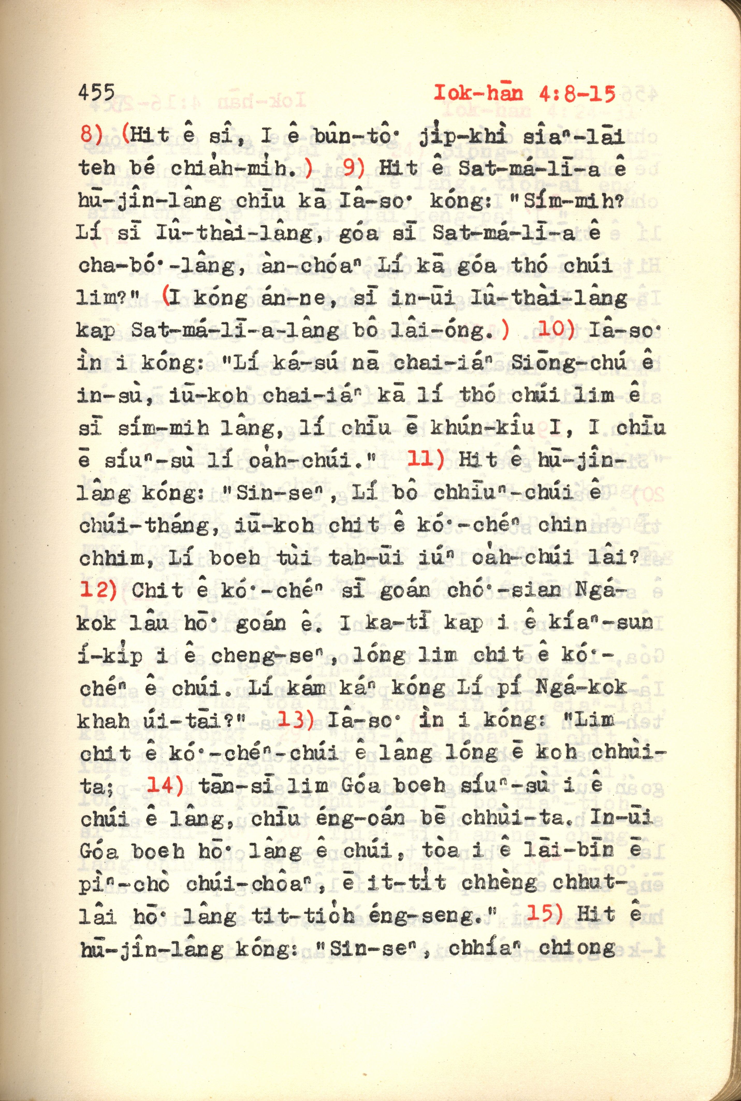 1972年新約紅皮聖經 約翰福音 4 章 8 節到 4 章 15 節
