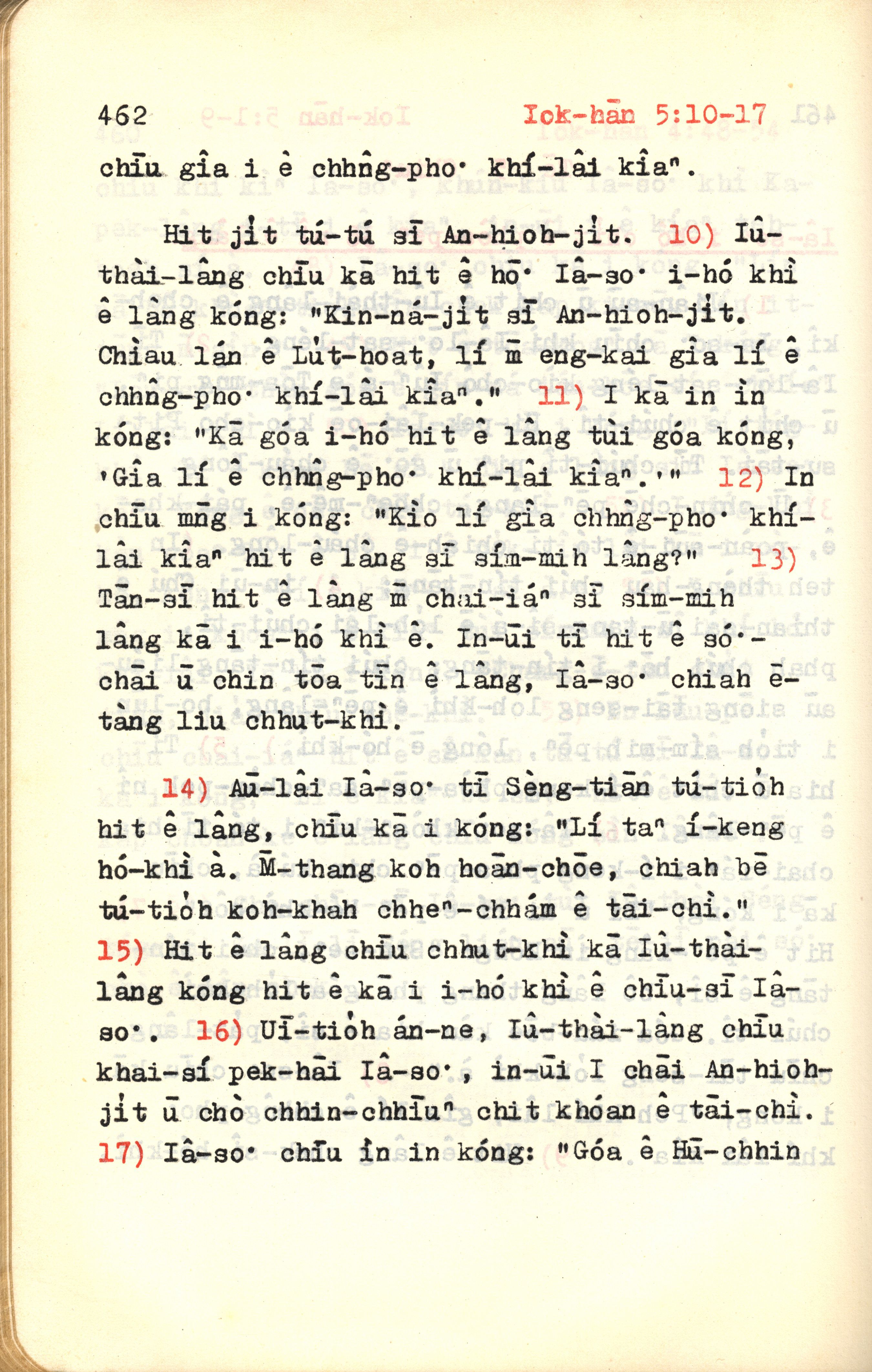 1972年新約紅皮聖經 約翰福音 5 章 10 節到 5 章 17 節
