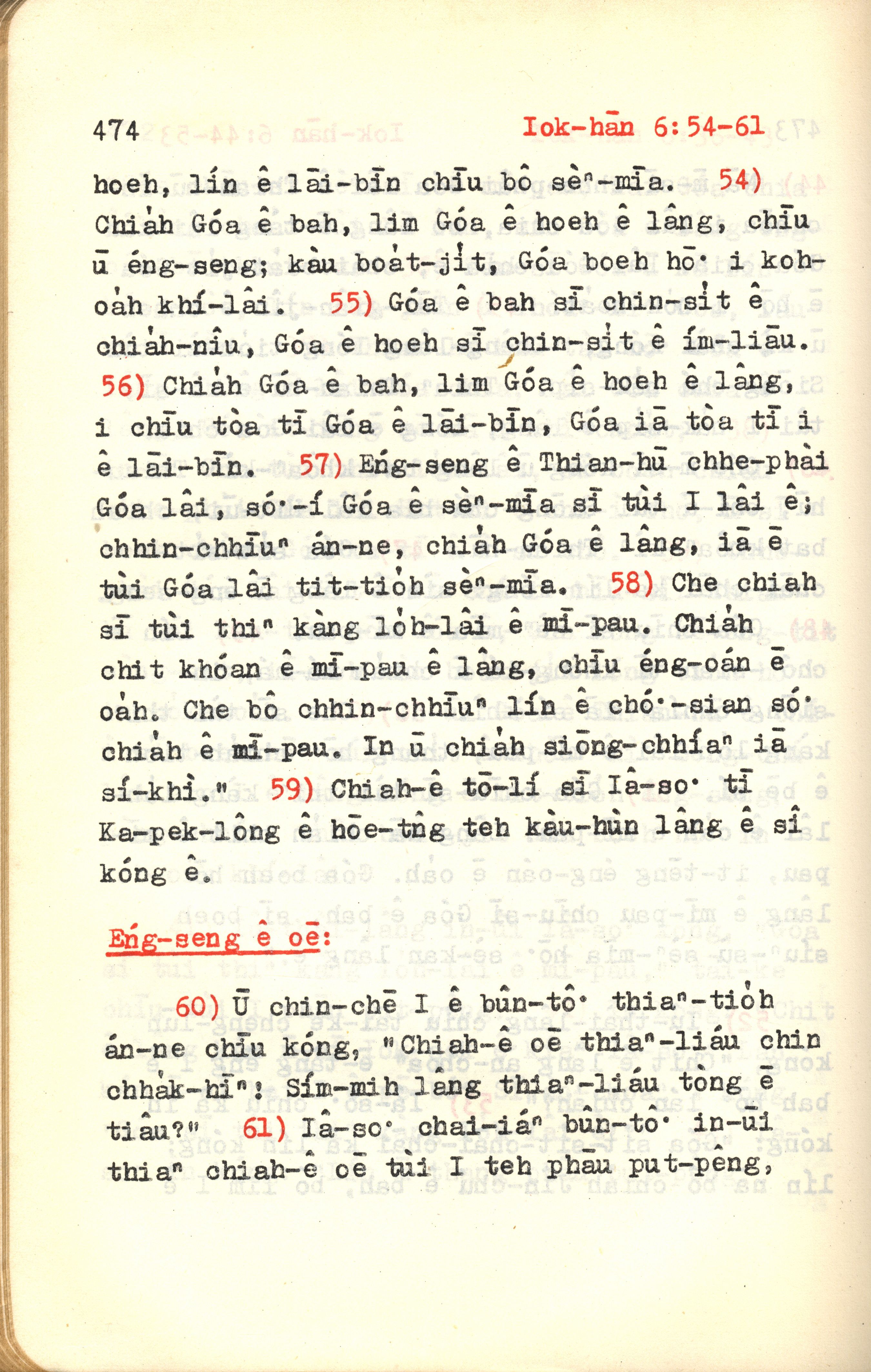 1972年新約紅皮聖經 約翰福音 6 章 54 節到 6 章 61 節