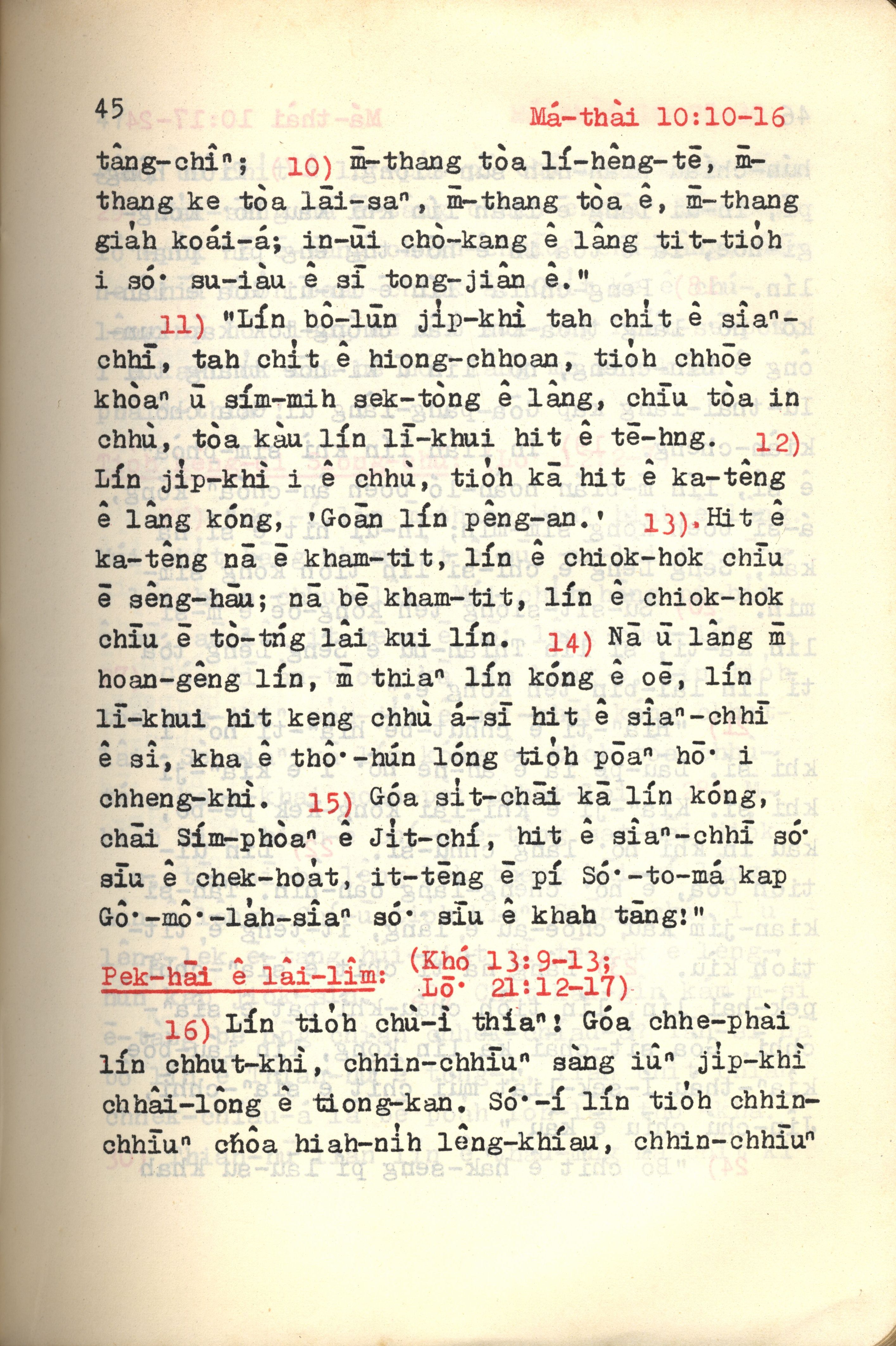 1972年新約紅皮聖經 馬太福音 10 章 10 節到 10 章 16 節
