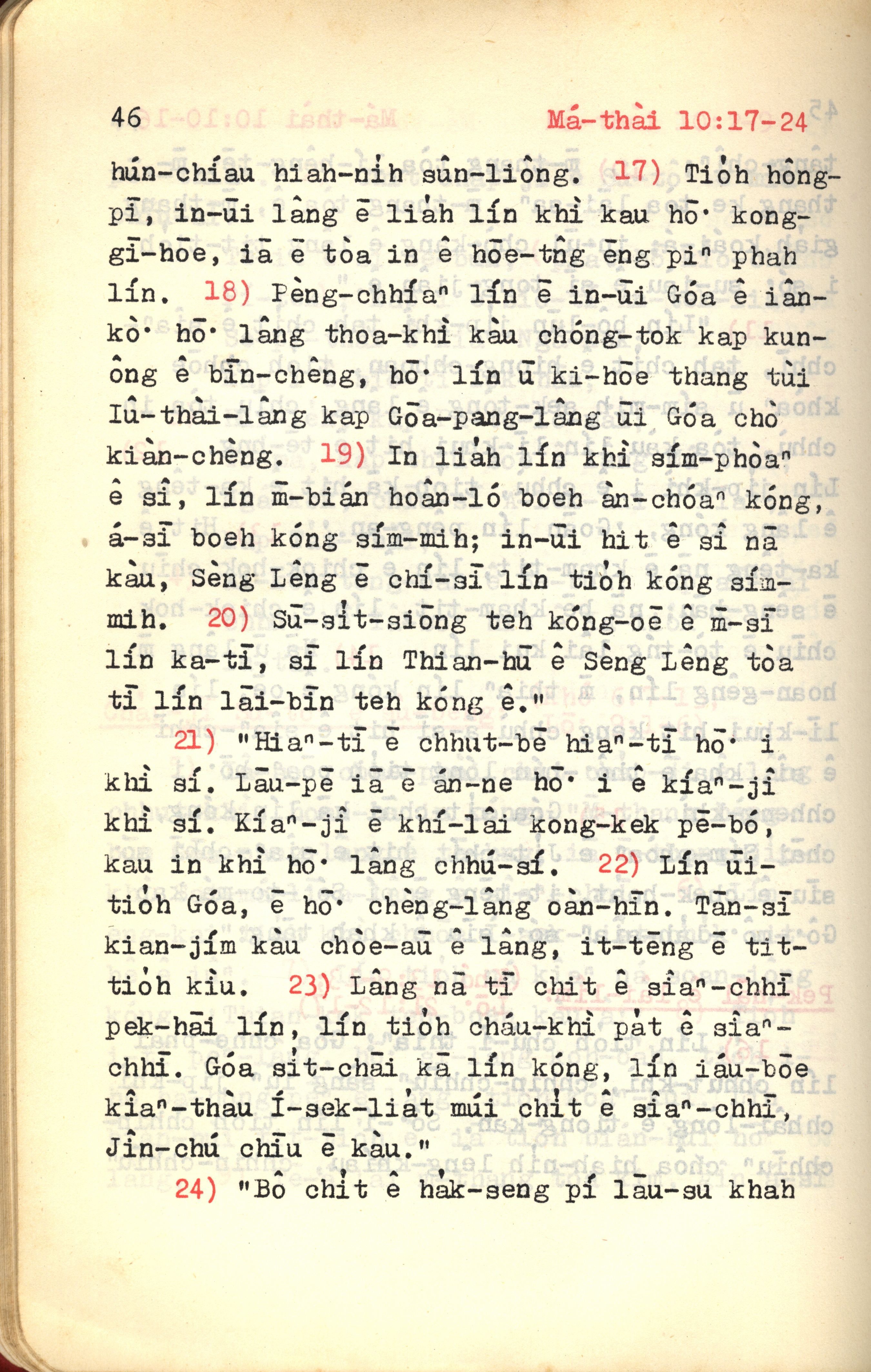 1972年新約紅皮聖經 馬太福音 10 章 17 節到 10 章 24 節