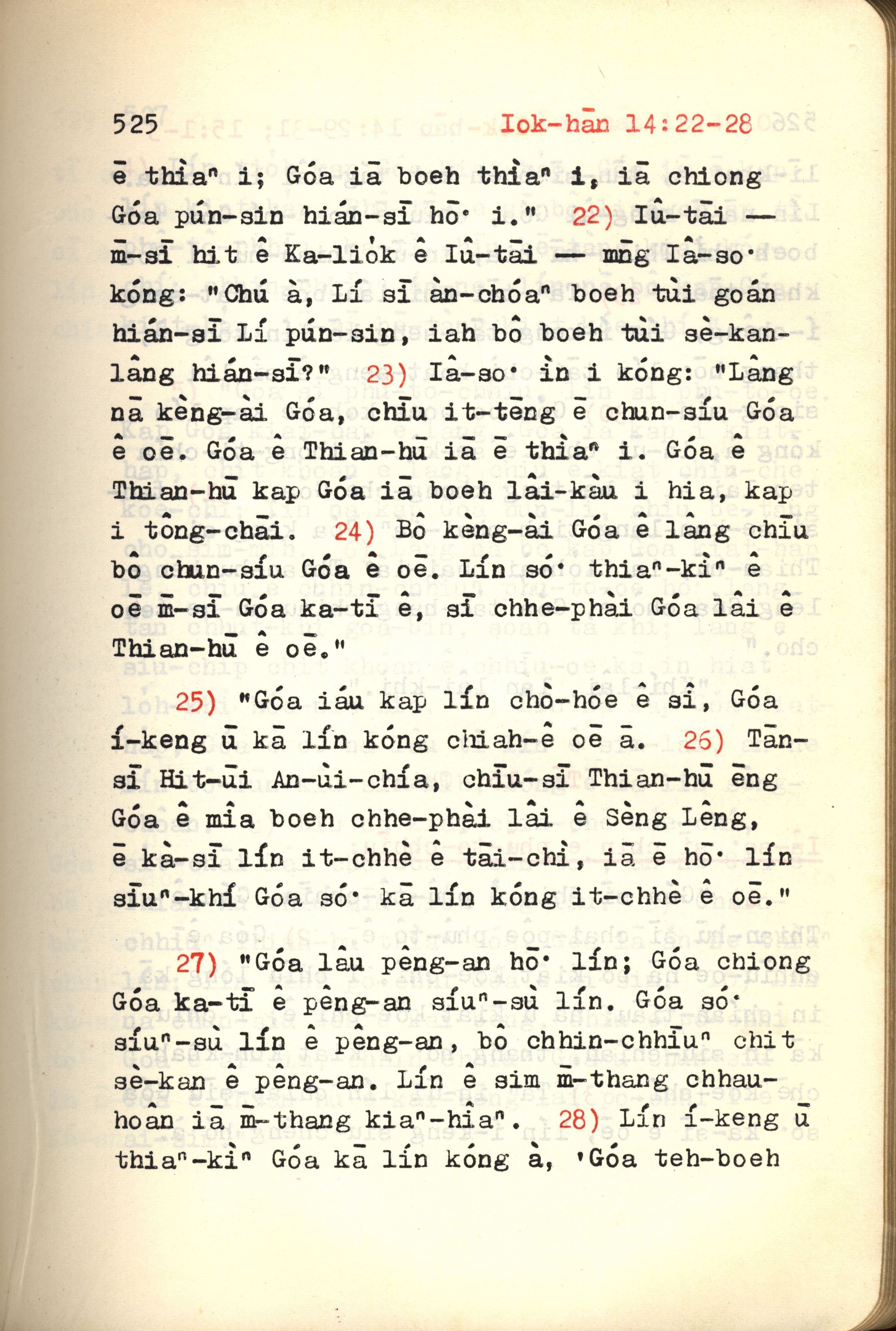 1972年新約紅皮聖經 約翰福音 14 章 22 節到 14 章 28 節