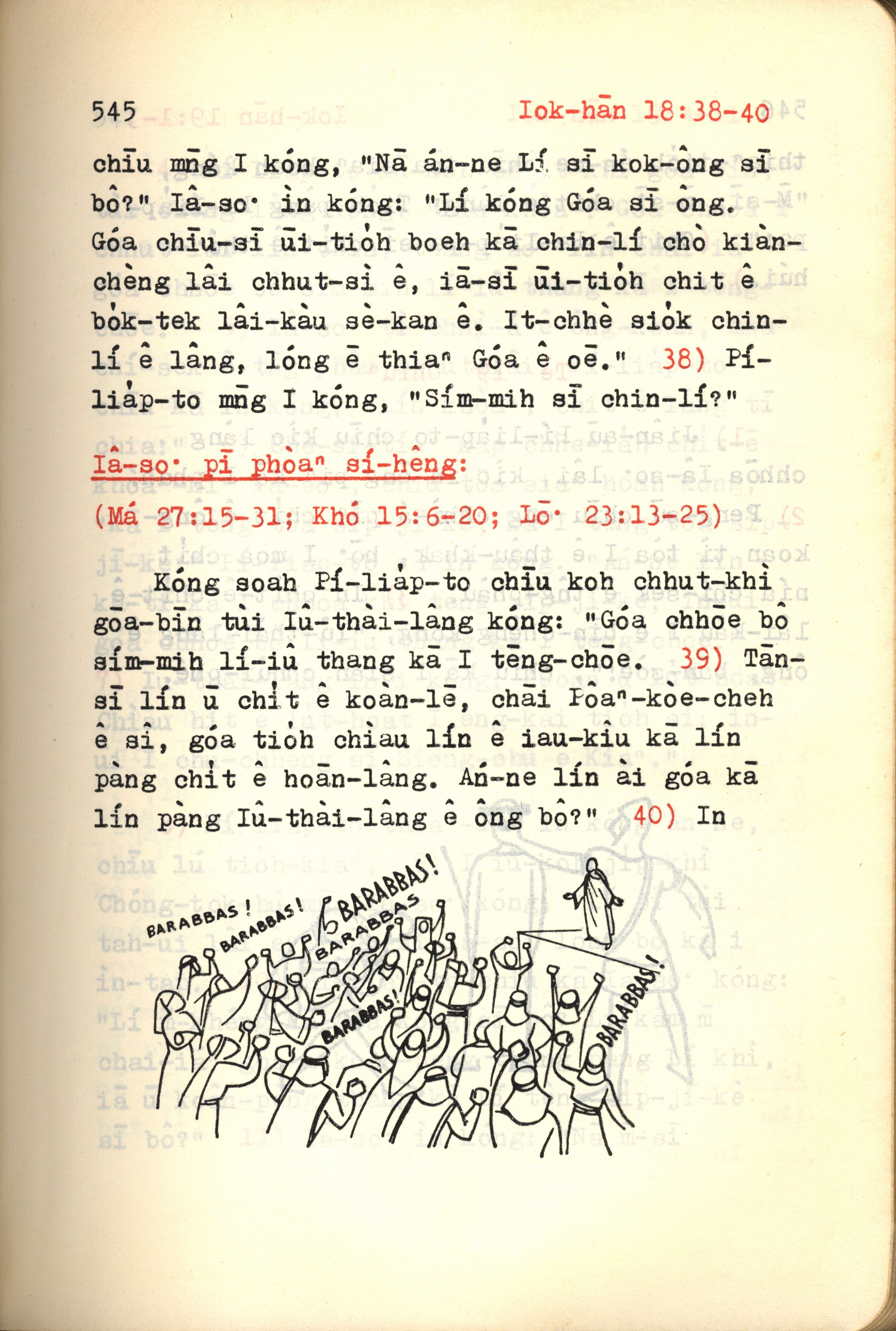 1972年新約紅皮聖經 約翰福音 18 章 38 節到 18 章 40 節
