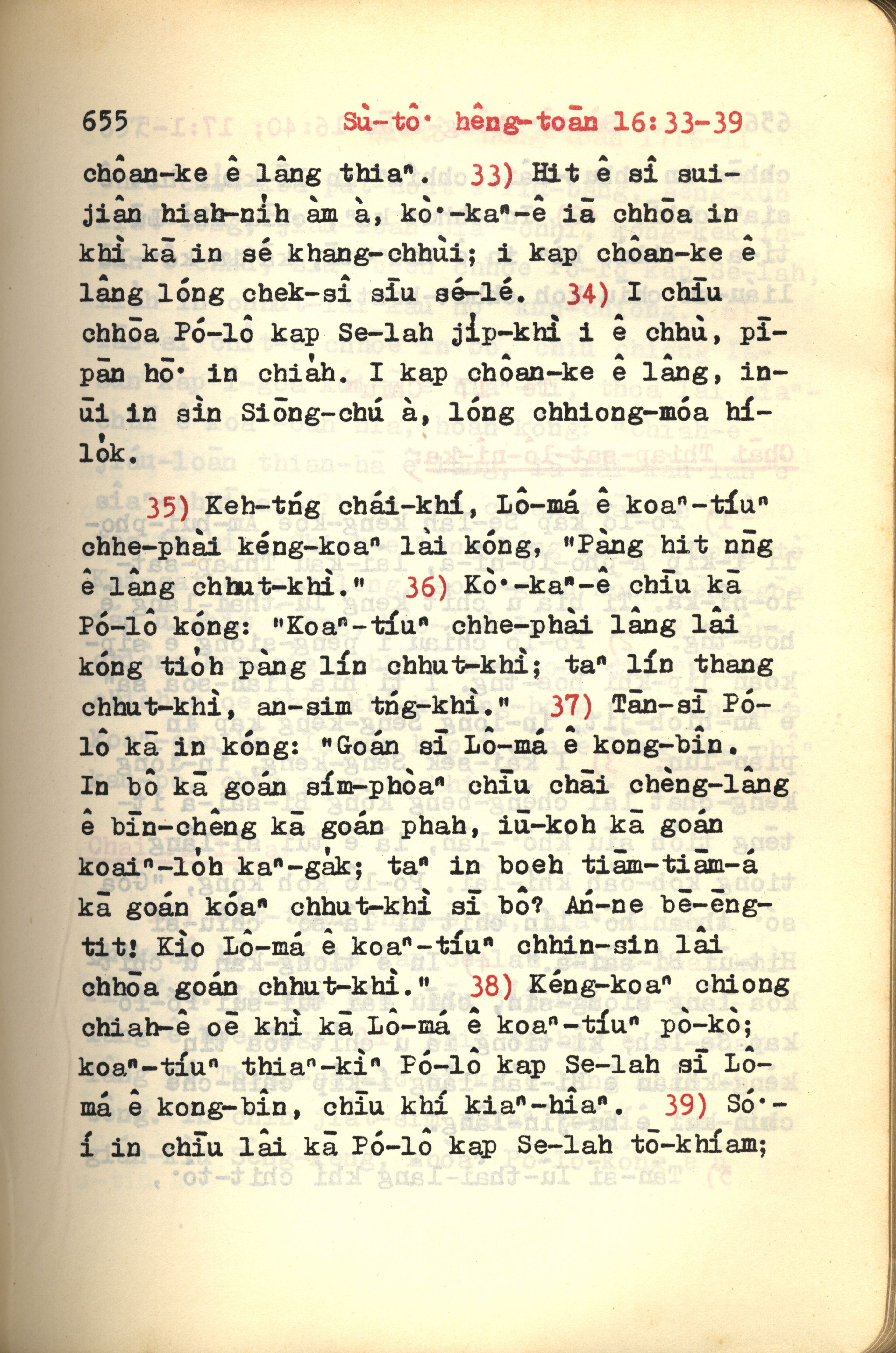 1972年新約紅皮聖經 使徒行傳 16 章 33 節到 16 章 39 節
