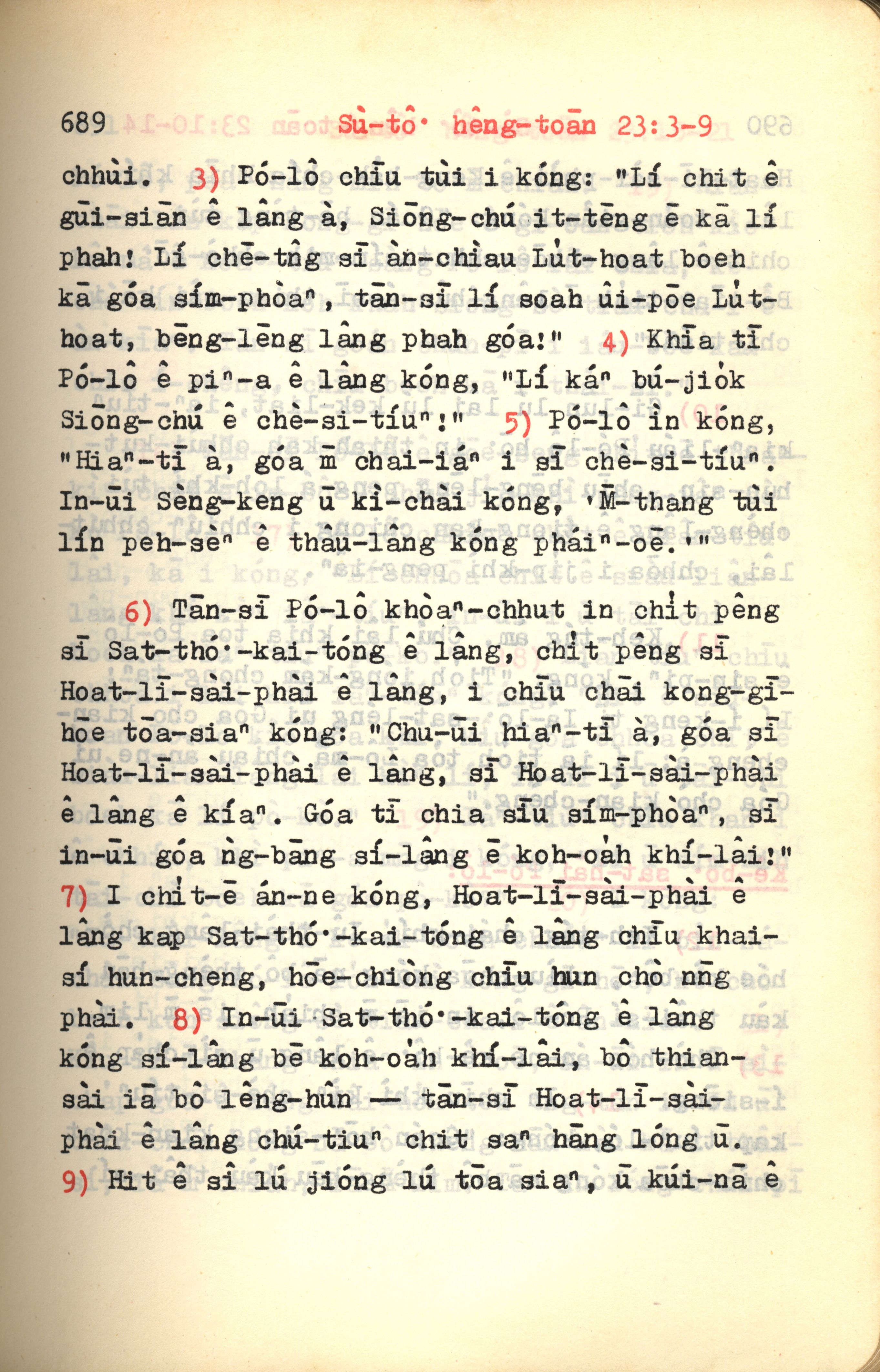 1972年新約紅皮聖經 使徒行傳 23 章 3 節到 23 章 9 節
