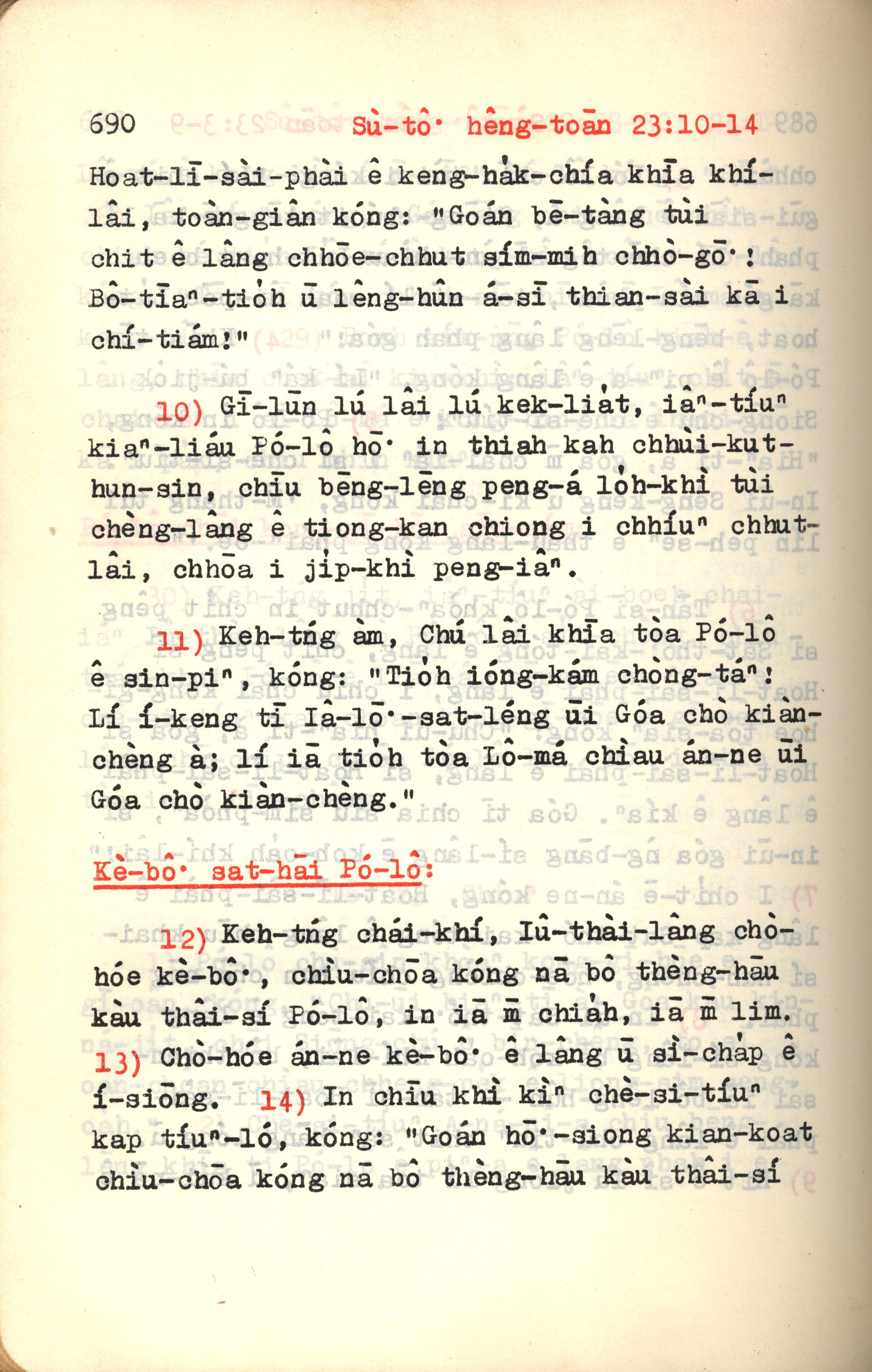 1972年新約紅皮聖經 使徒行傳 23 章 10 節到 23 章 14 節