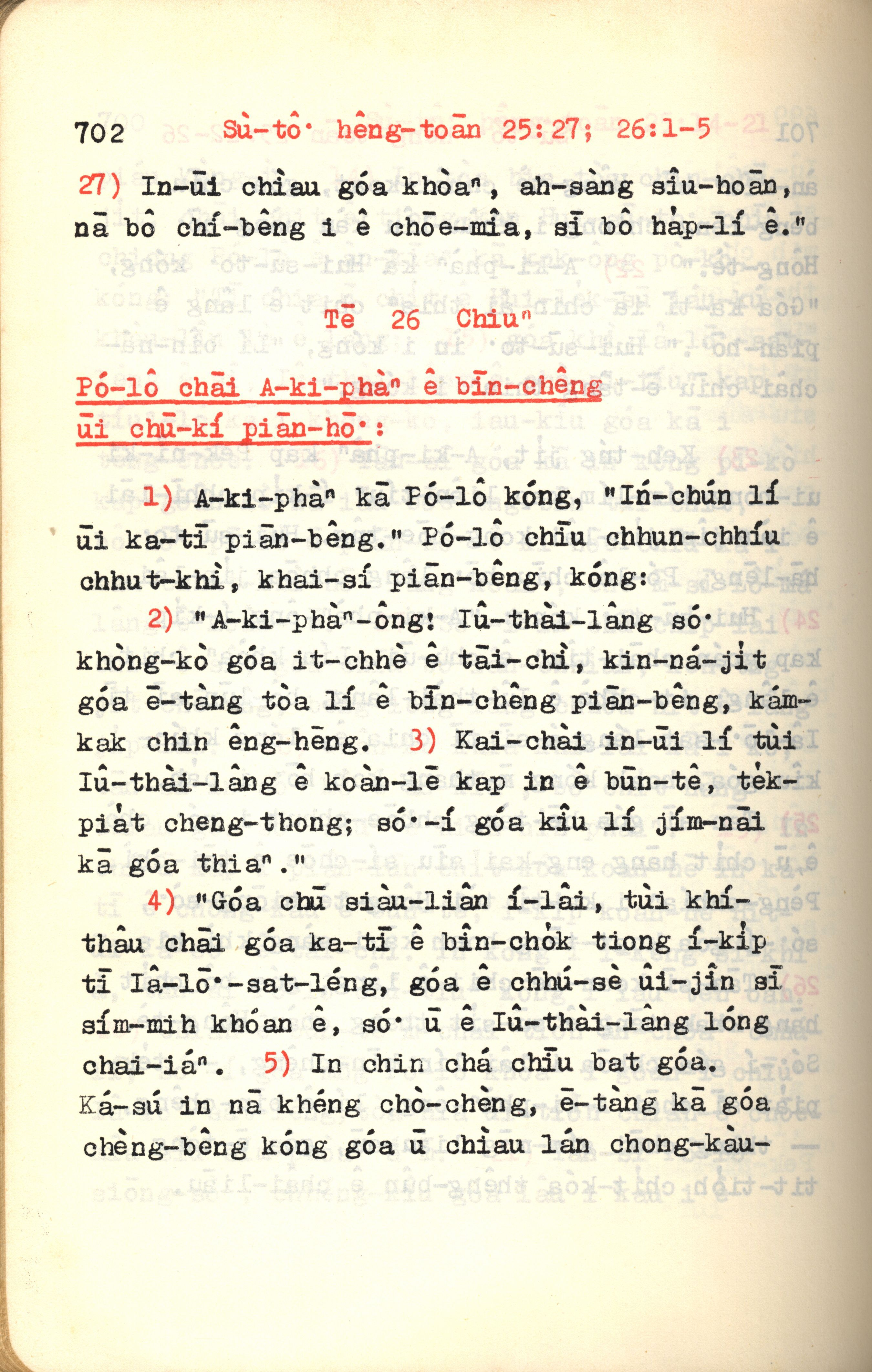 1972年新約紅皮聖經 使徒行傳 25 章 27 節到 26 章 5 節