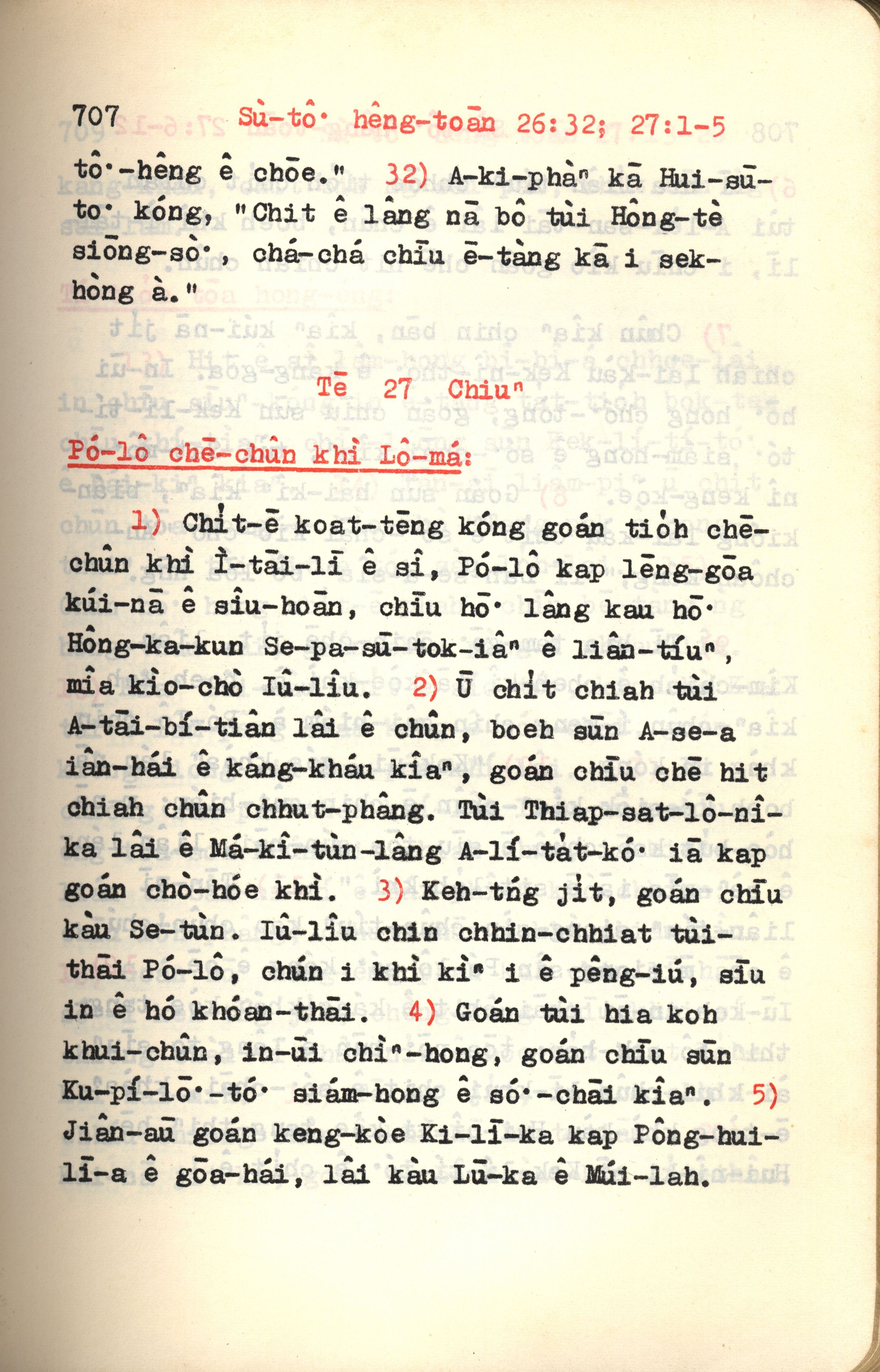 1972年新約紅皮聖經 使徒行傳 26 章 32 節到 27 章 5 節