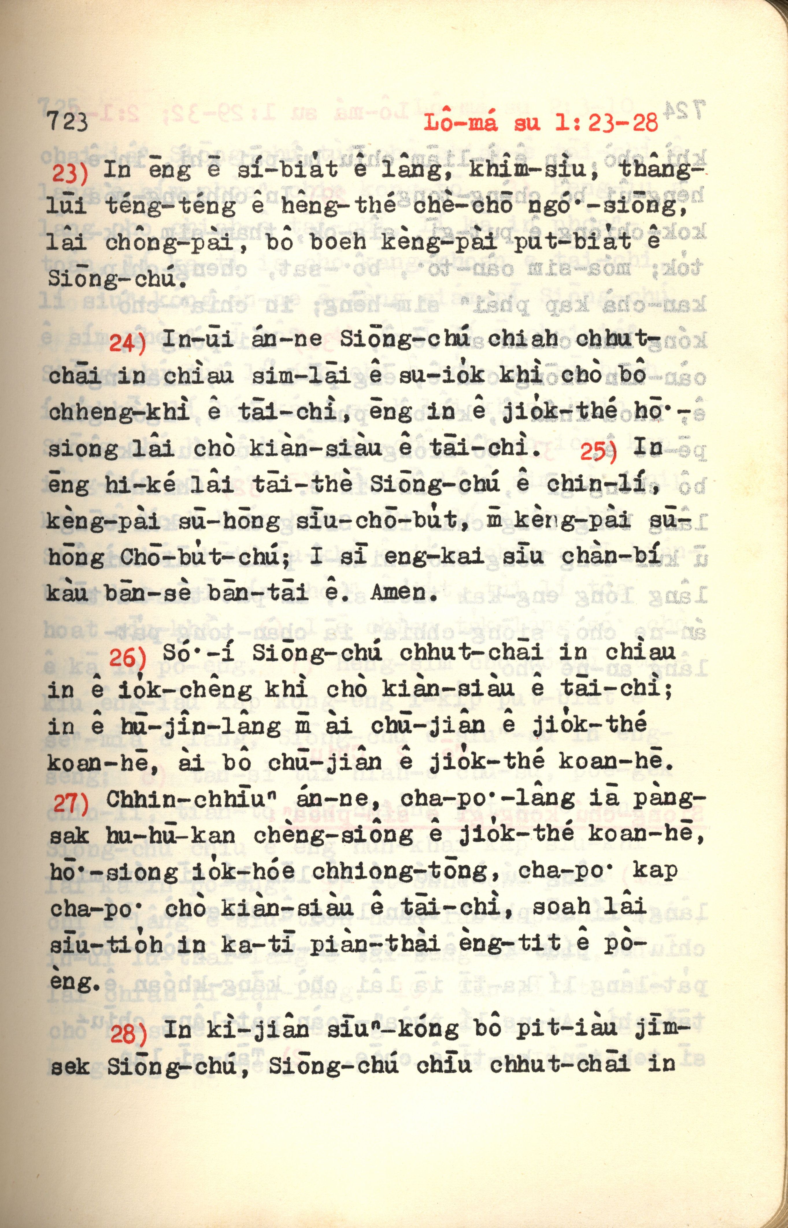 1972年新約紅皮聖經 羅馬書 1 章 23 節到 1 章 28 節