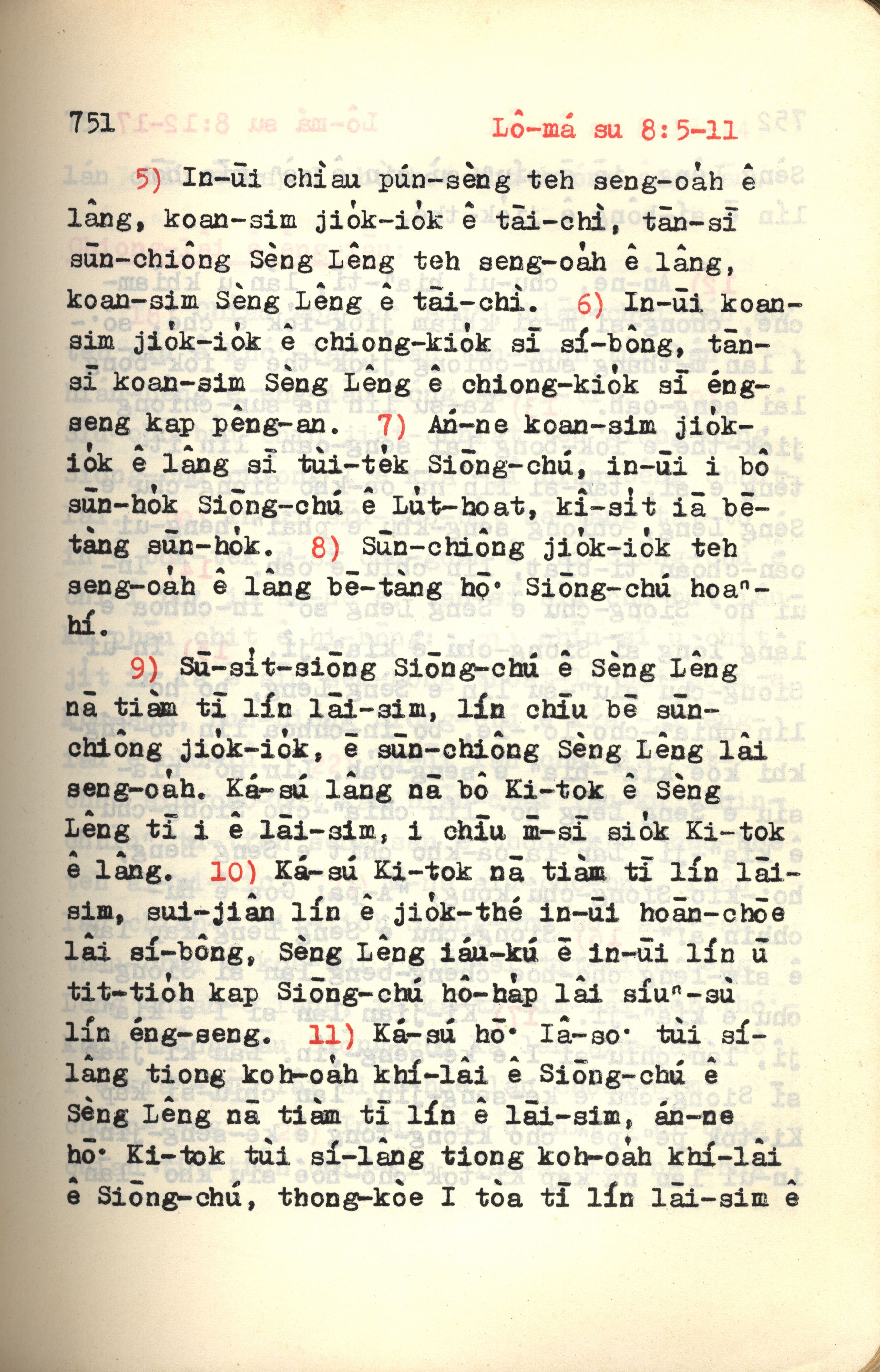 1972年新約紅皮聖經 羅馬書 8 章 5 節到 8 章 11 節