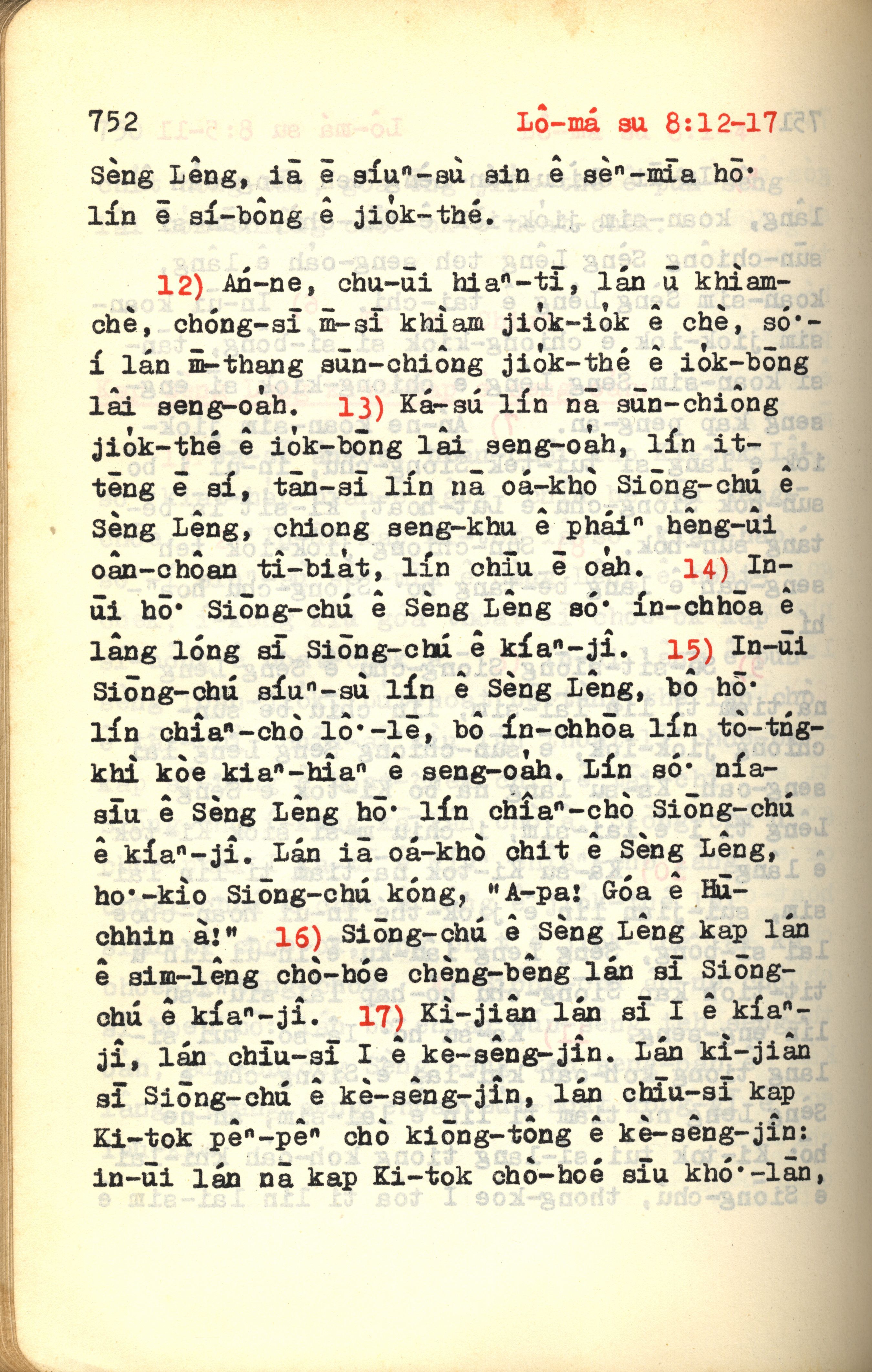 1972年新約紅皮聖經 羅馬書 8 章 12 節到 8 章 17 節