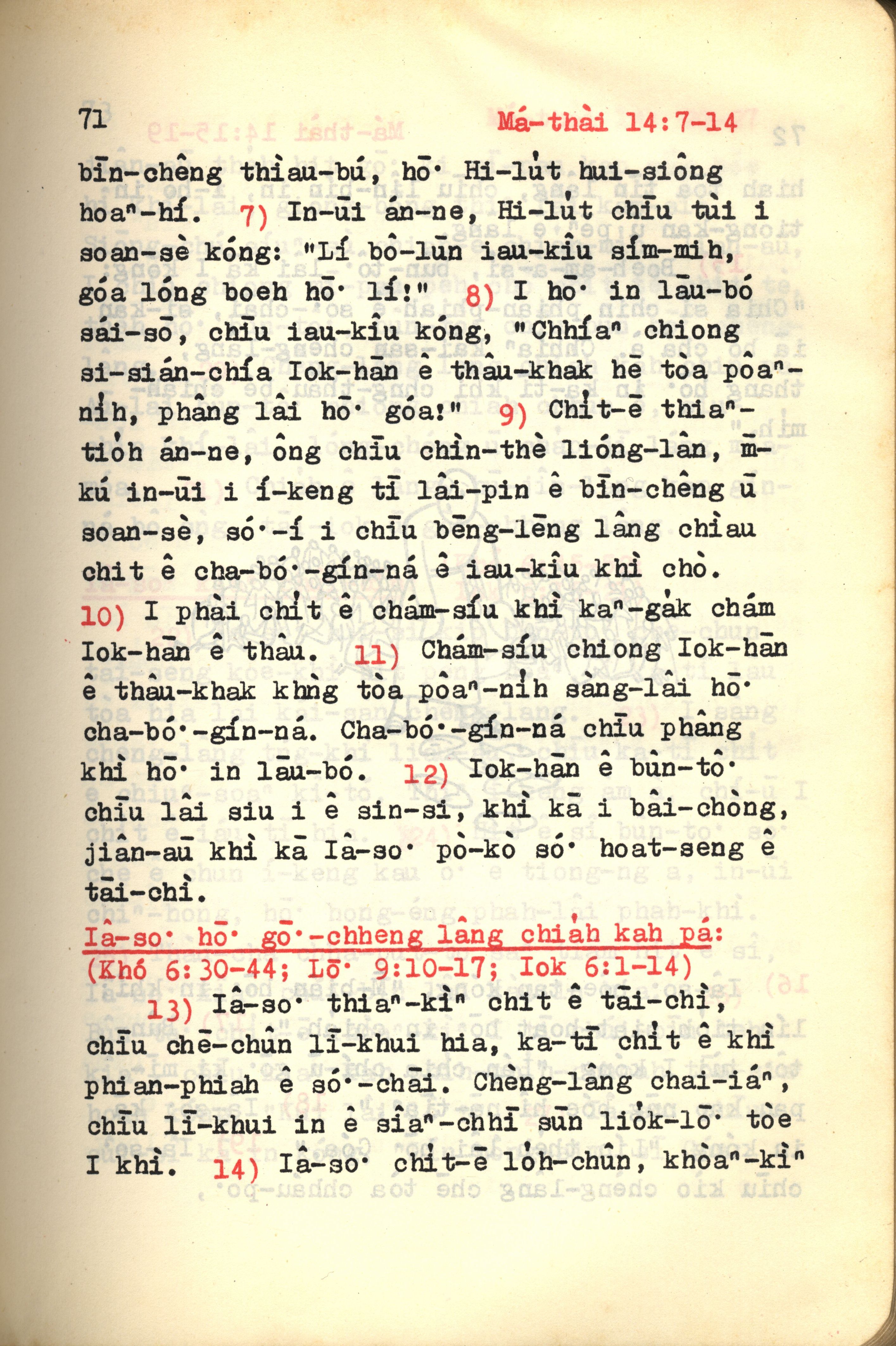 1972年新約紅皮聖經 馬太福音 14 章 7 節到 14 章 14 節