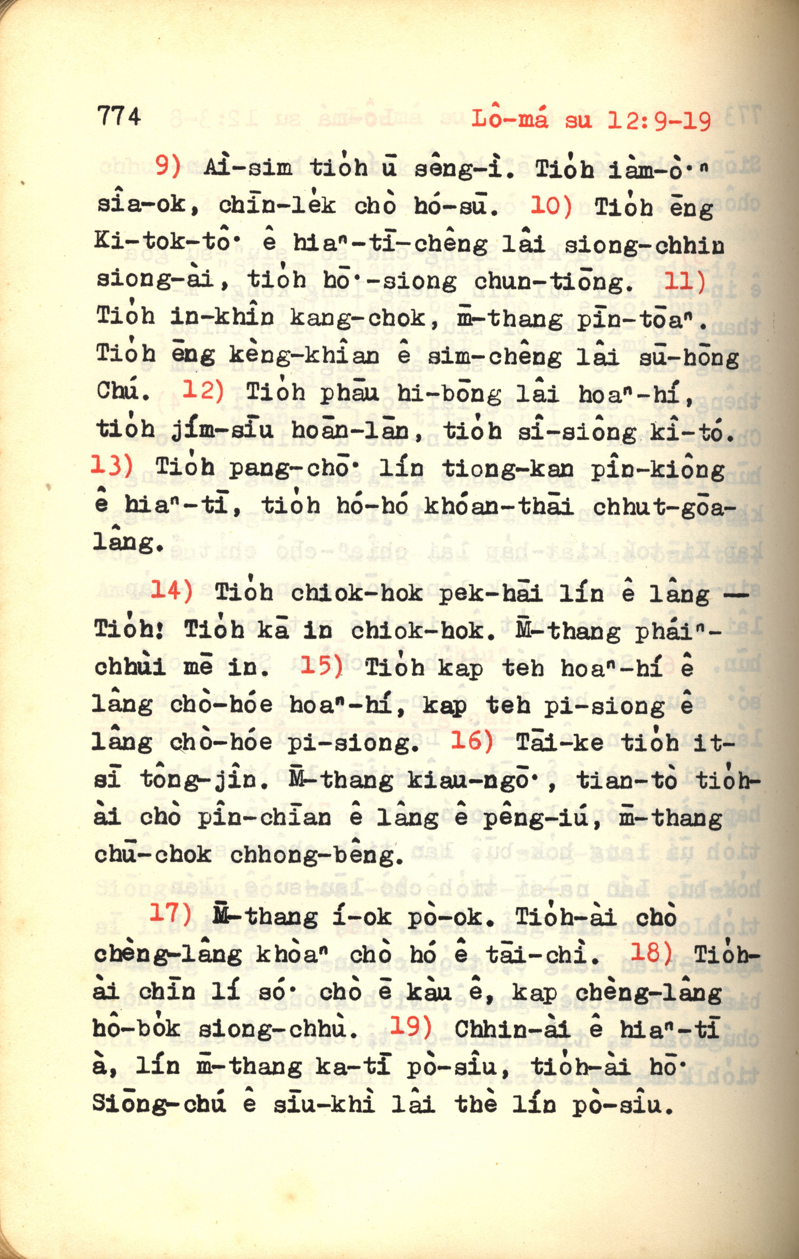 1972年新約紅皮聖經 羅馬書 12 章 9 節到 12 章 19 節