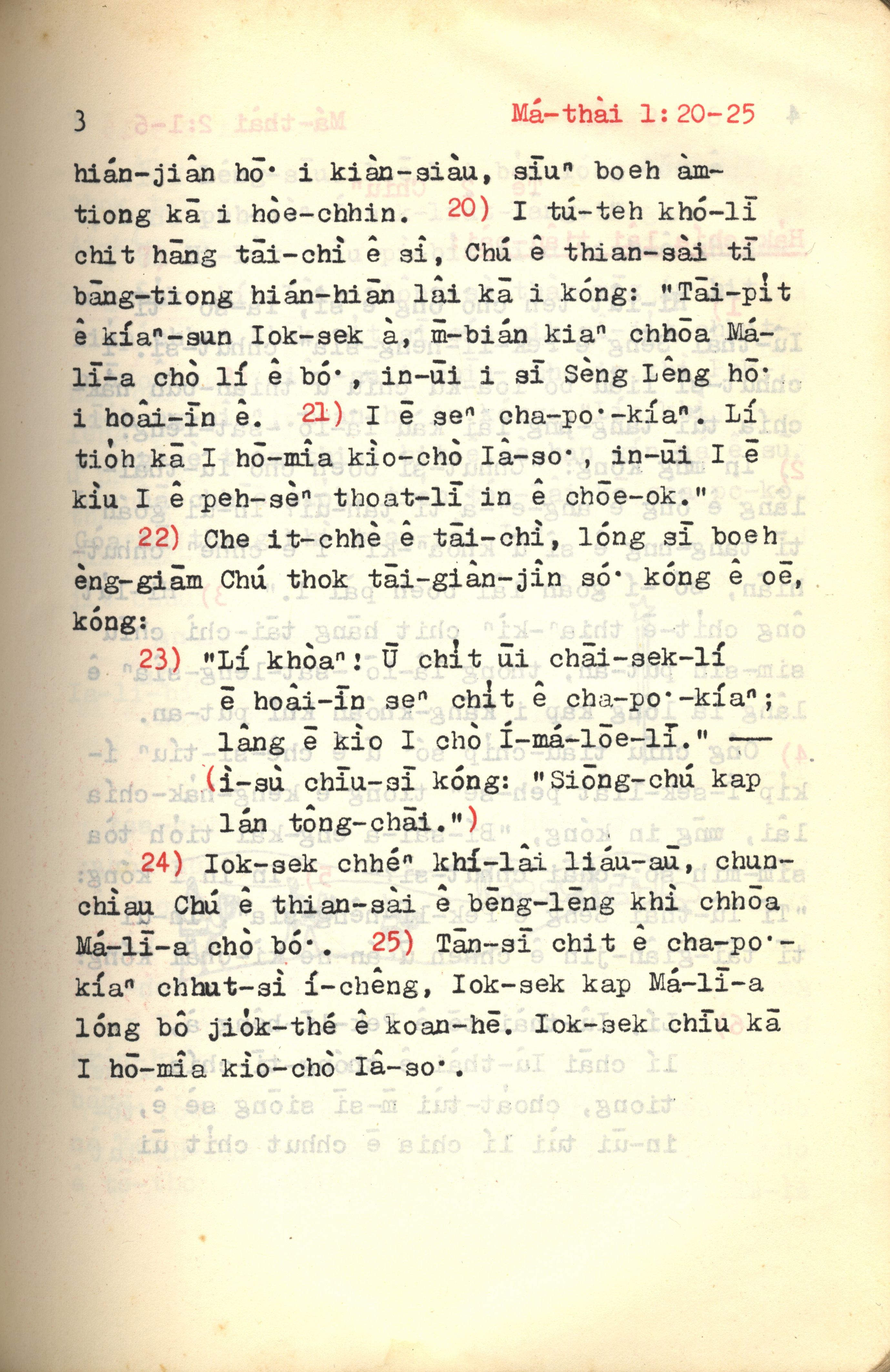 1972年新約紅皮聖經 馬太福音 1 章 20 節到 1 章 25 節