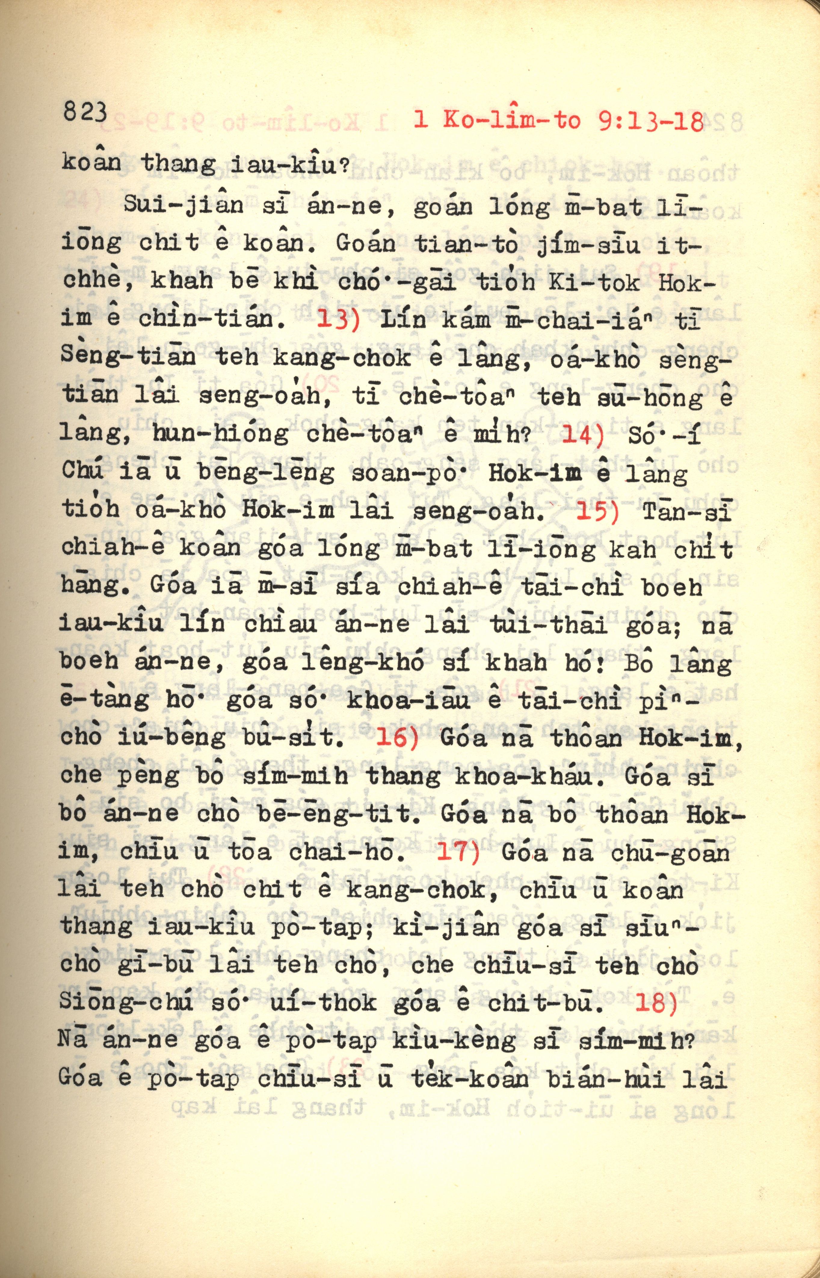 1972年新約紅皮聖經 哥林多前書 9 章 13 節到 9 章 18 節