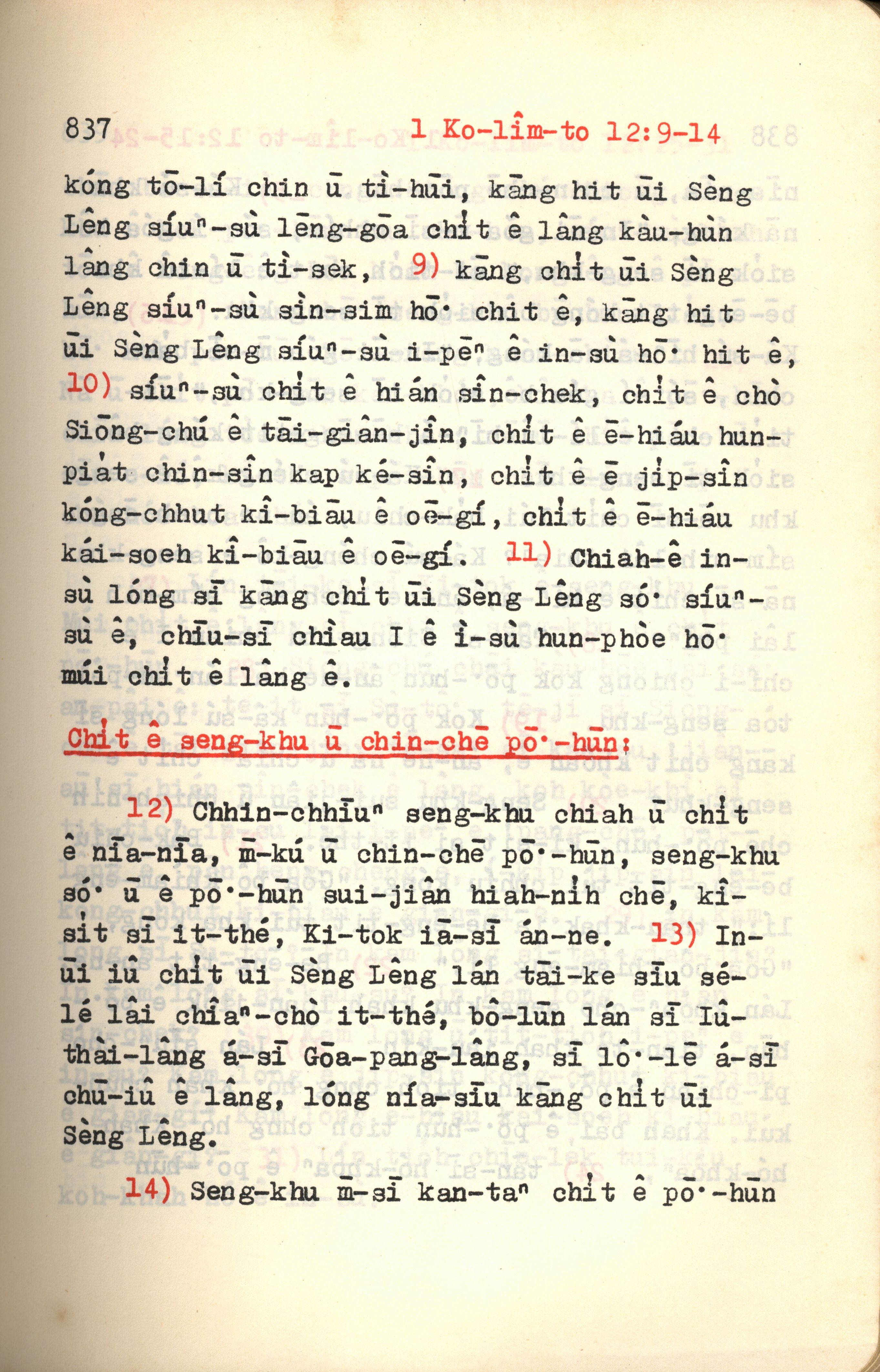 1972年新約紅皮聖經 哥林多前書 12 章 9 節到 12 章 14 節