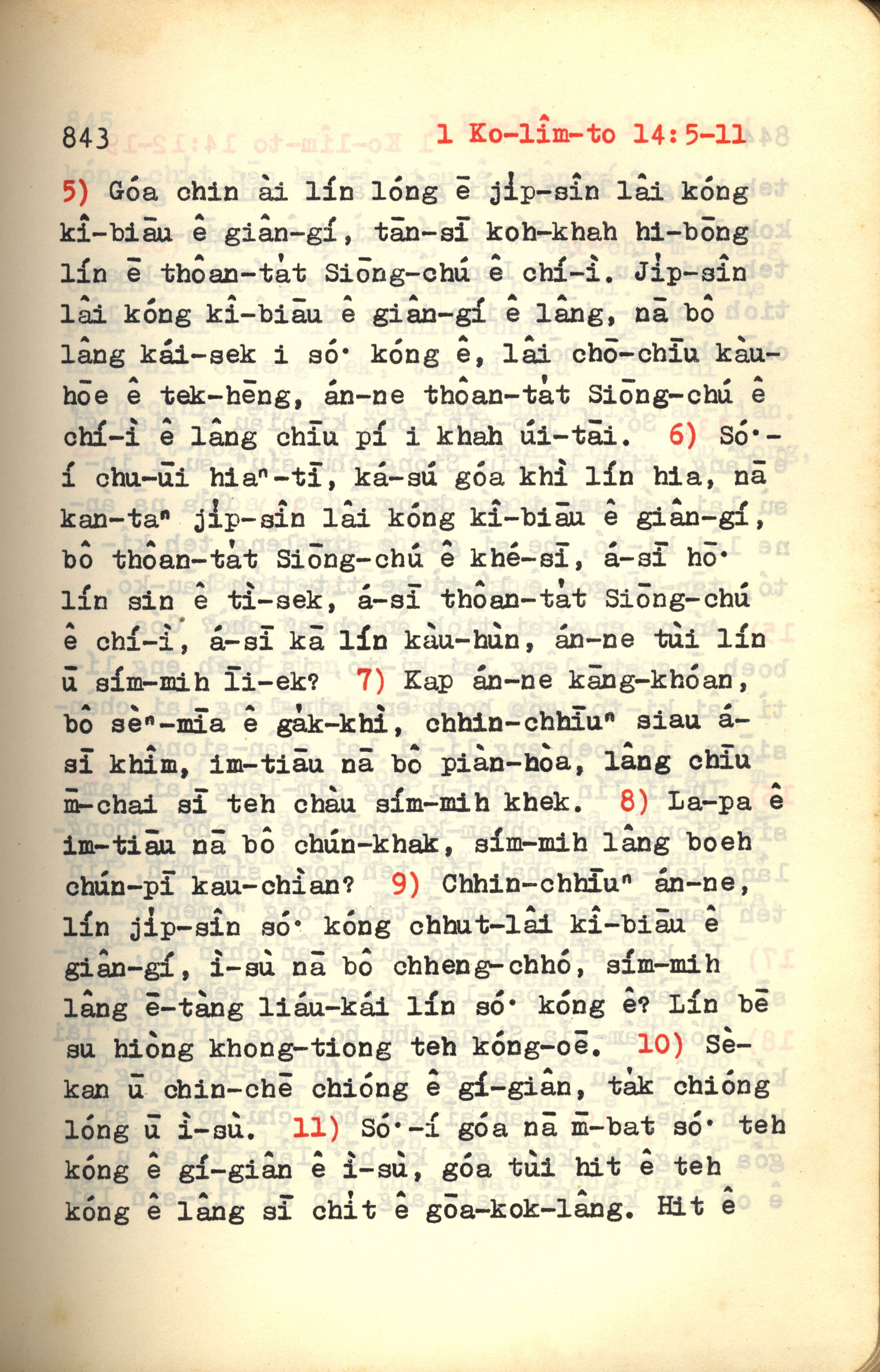 1972年新約紅皮聖經 哥林多前書 14 章 5 節到 14 章 11 節