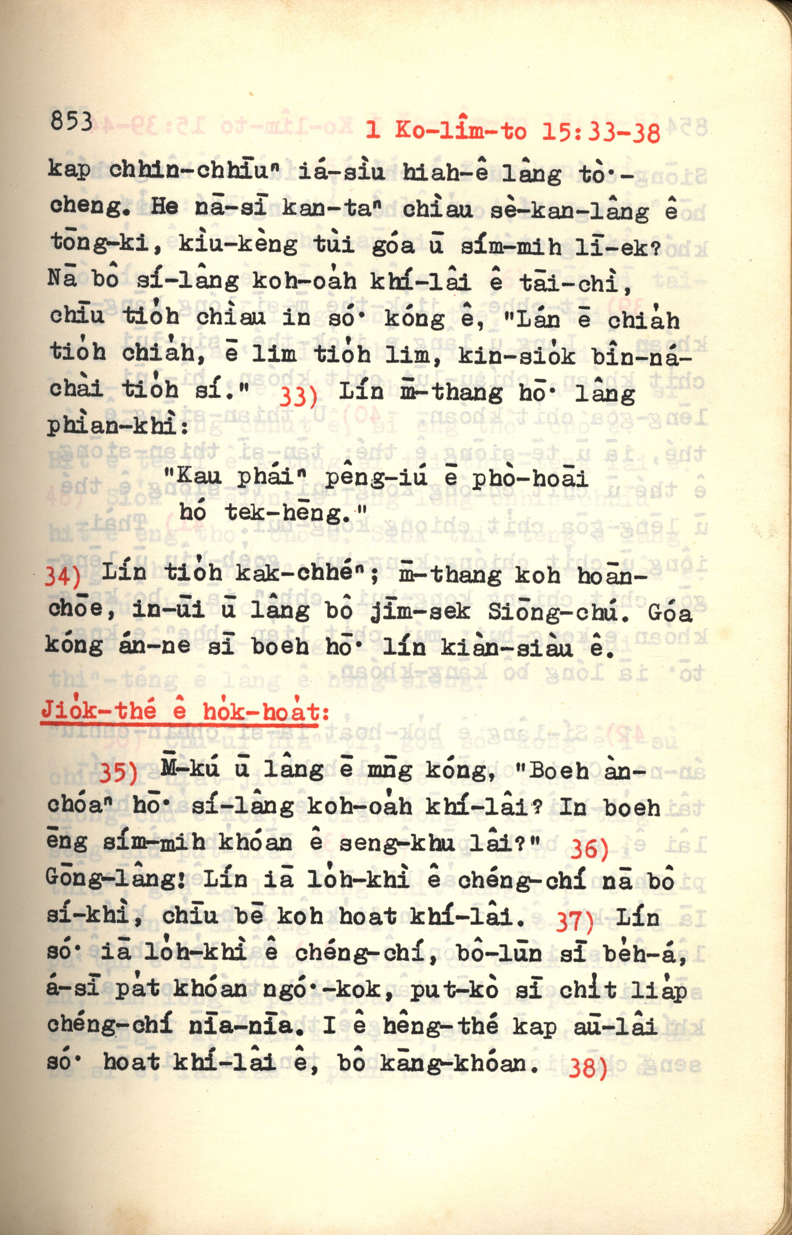1972年新約紅皮聖經 哥林多前書 15 章 33 節到 15 章 38 節