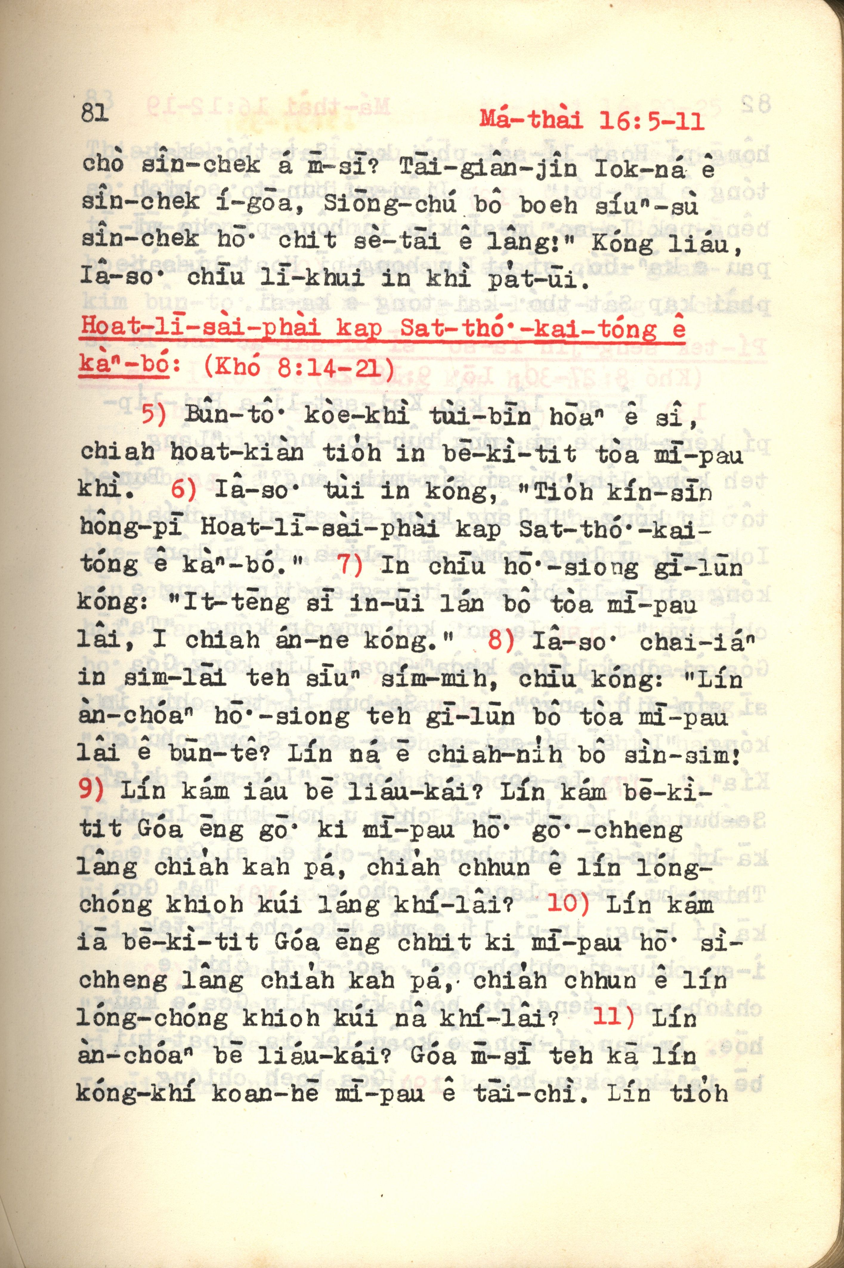 1972年新約紅皮聖經 馬太福音 16 章 5 節到 16 章 11 節