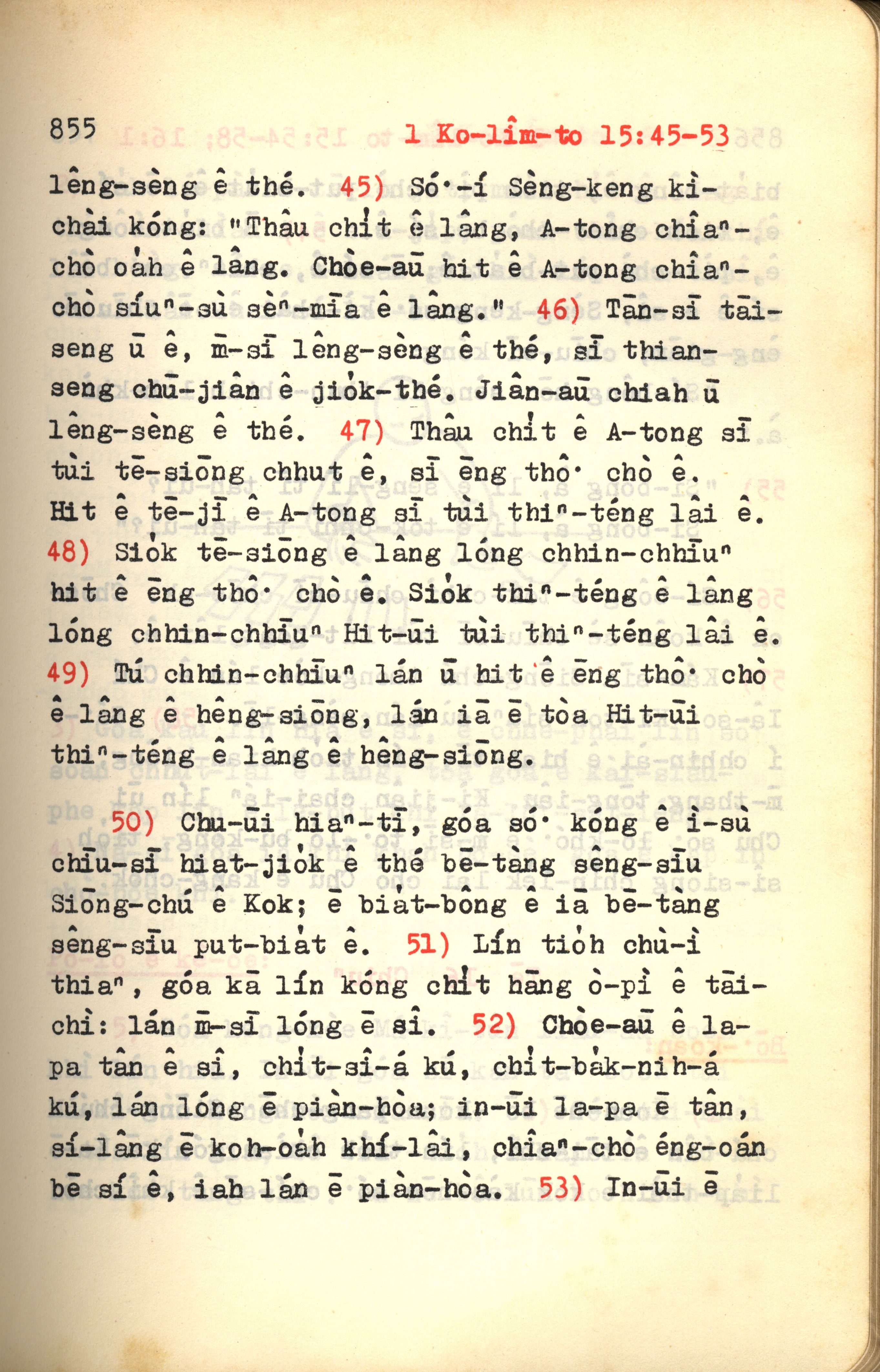 1972年新約紅皮聖經 哥林多前書 15 章 45 節到 15 章 53 節