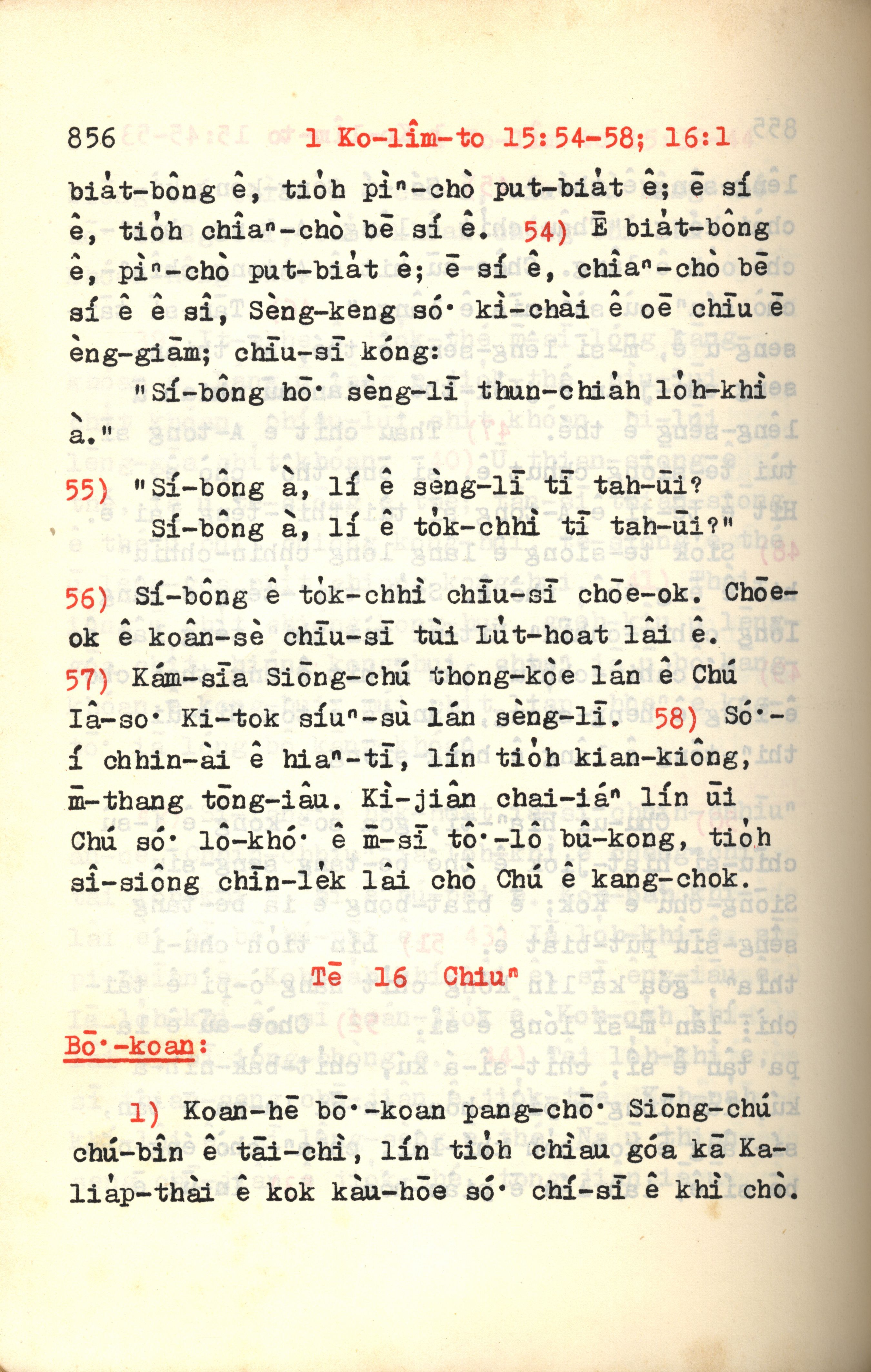 1972年新約紅皮聖經 哥林多前書 15 章 54 節到 16 章 1 節
