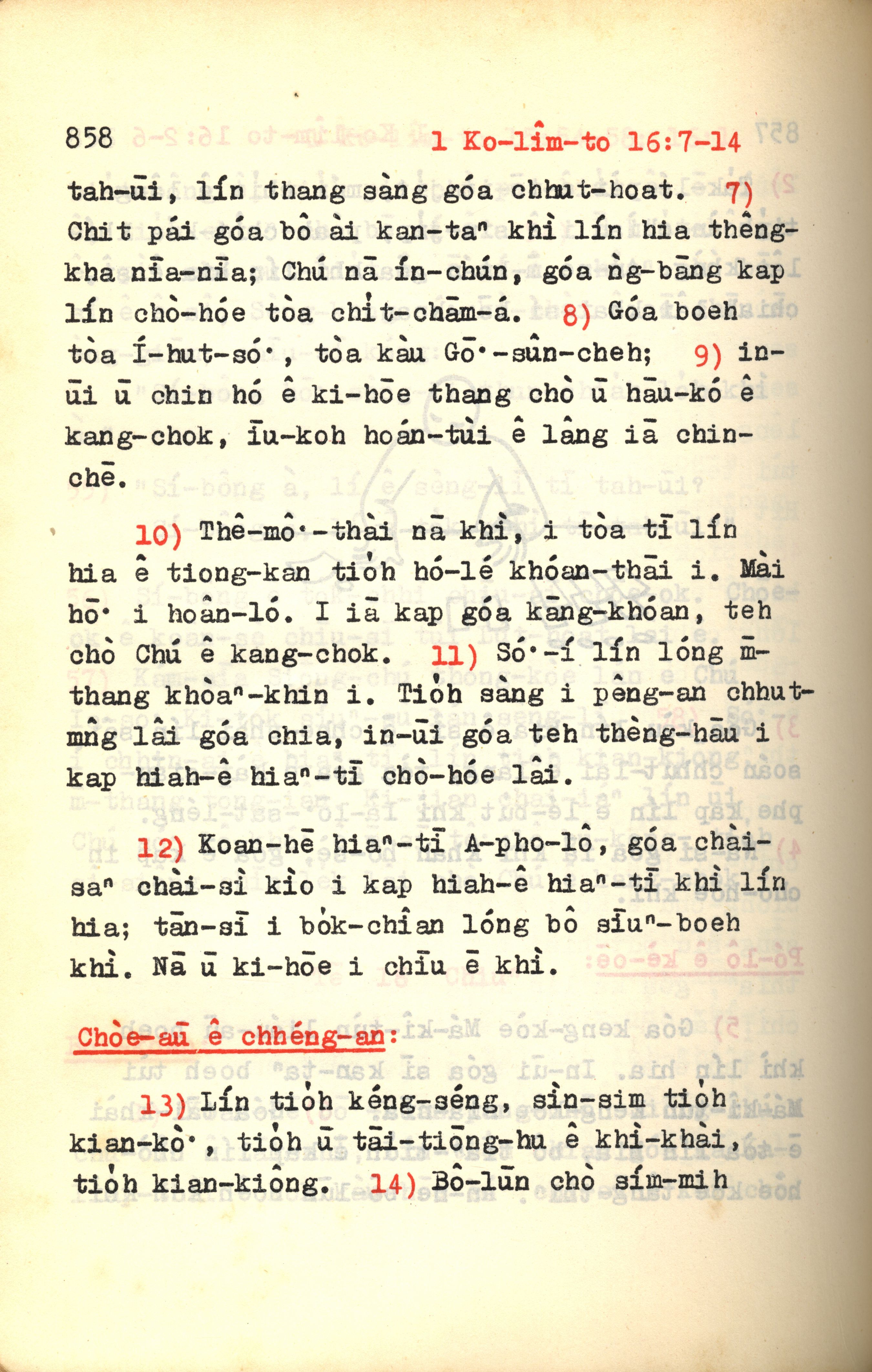 1972年新約紅皮聖經 哥林多前書 16 章 7 節到 16 章 14 節